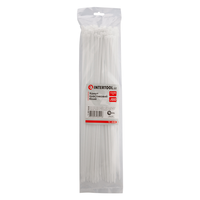 Опис Хомут пластиковий 4,8x400 мм, (100 шт/упак), білий INTERTOOL TC-4840 код товару TC-4840