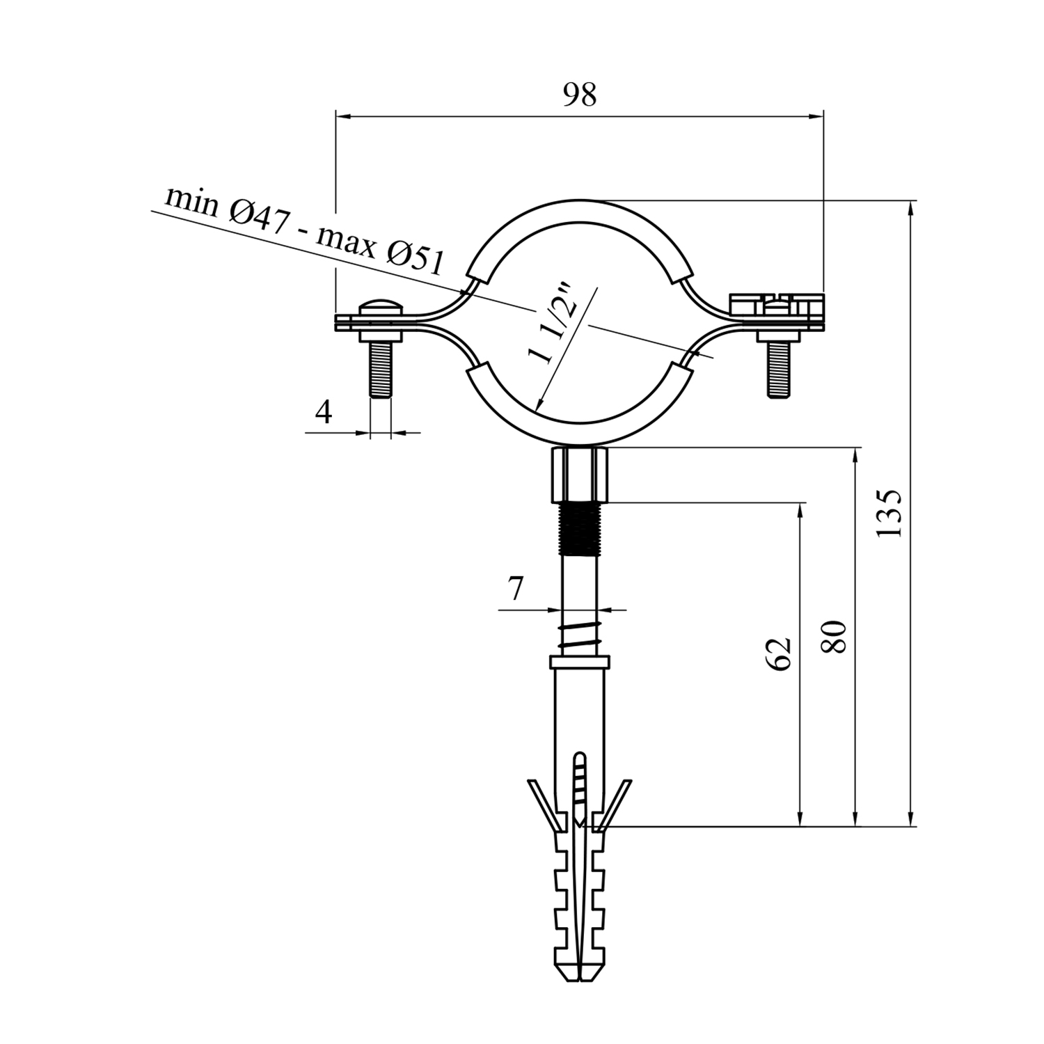 Характеристики Хомут зі шпилькою в зборі Karro 1 1/2 47-51 мм металевий код товару CV018068