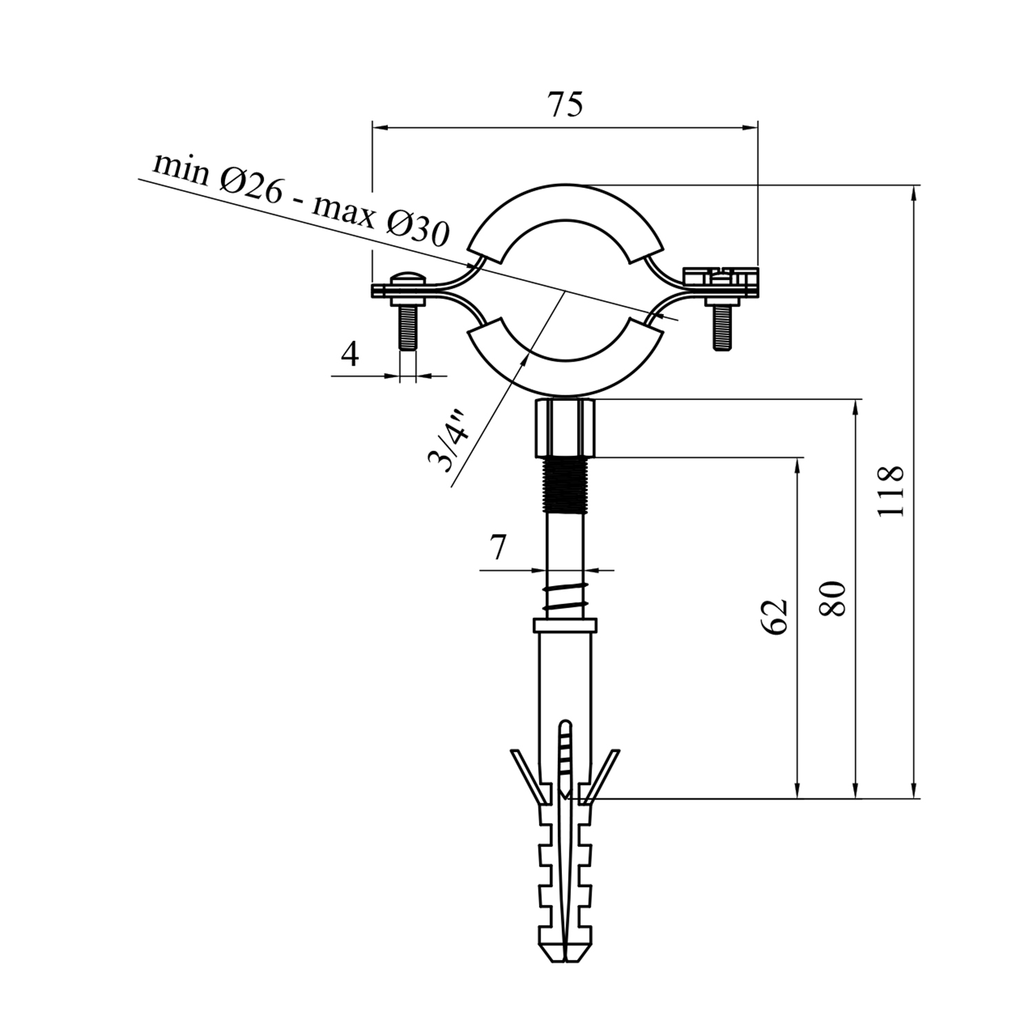 Характеристики Хомут зі шпилькою в зборі Karro 3/4 26-30 мм металевий код товару CV014901