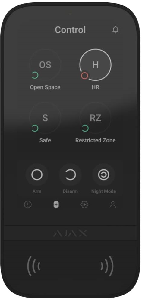 Ajax KeyPad TouchScreen є бездротовою клавіатурою з сенсорним екраном для управління системою безпеки Ajax. Вона підтримує радіопротоколи Jeweller та Wings. Сенсорний екран є ємнісним і має діагональ 5 дюймів з роздільною здатністю 480 × 854 пікселів. Клавіатура дозволяє безконтактний доступ за допомогою карток і брелоків, а також підтримує Bluetooth low energy (BLE). Живиться від 6 батарейок типу AA, а також може працювати від зовнішнього джерела живлення напругою 10,5–14 В і струмом до 0,5 А. Розміри клавіатури становлять 171,5 × 82,1 × 26 мм, вага - 327 г.