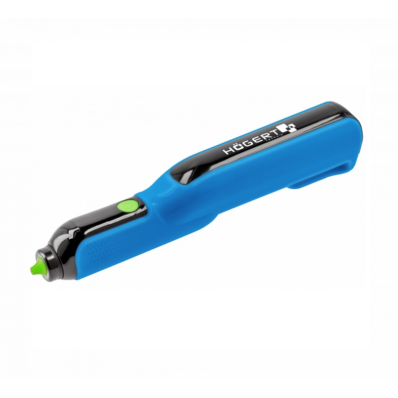 Акумуляторний клейовий пістолет для склеювання таких матеріалів, як дерево, текстиль, фольга, папір, картон, пластик, кераміка, шкіра тощо. Завдяки ергономічній, легкій конструкції, він зручний і може використовуватися як професіоналами, так і майстрами-аматорами.