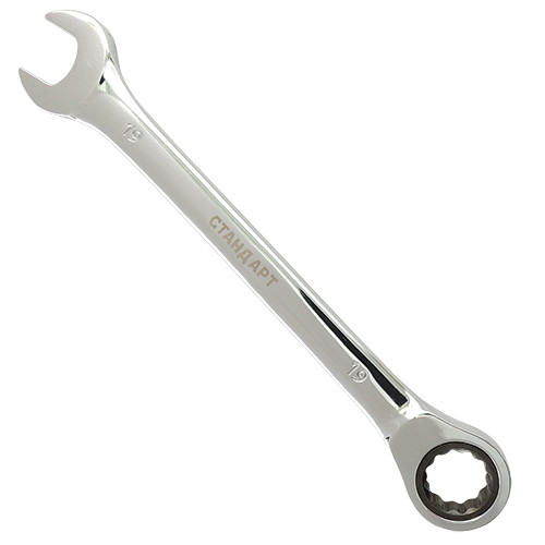 Ключ комбінований з трещеткою 17 мм СТАНДАРТ - це зручний інструмент для роботи з гайками та болтами. Виготовлений з міцної сталі, має ергономічну ручку для комфортного використання.