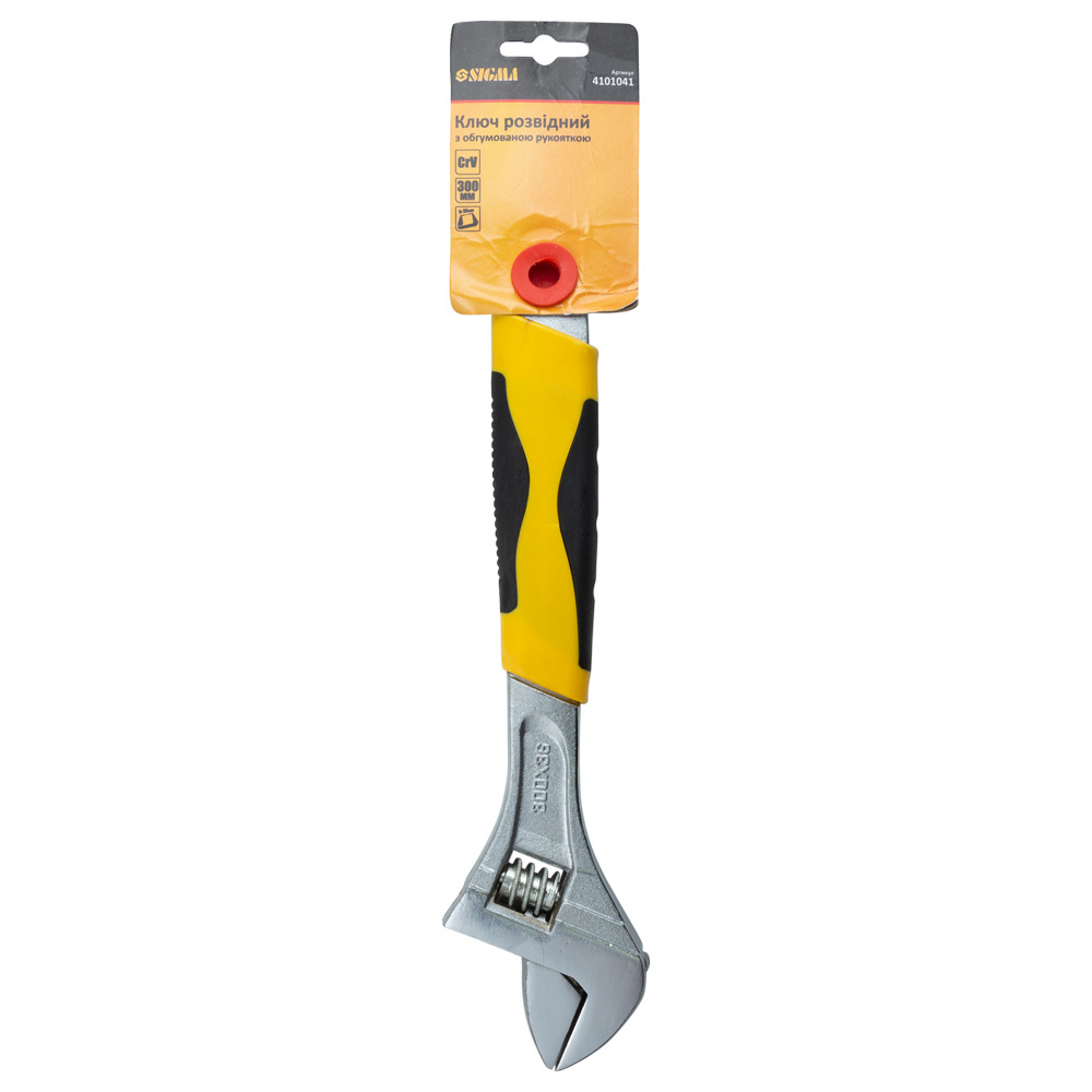 Характеристики Ключ разводной 300мм CrV (обрезиненная рукоятка) SIGMA (4101041) код товару 4101041