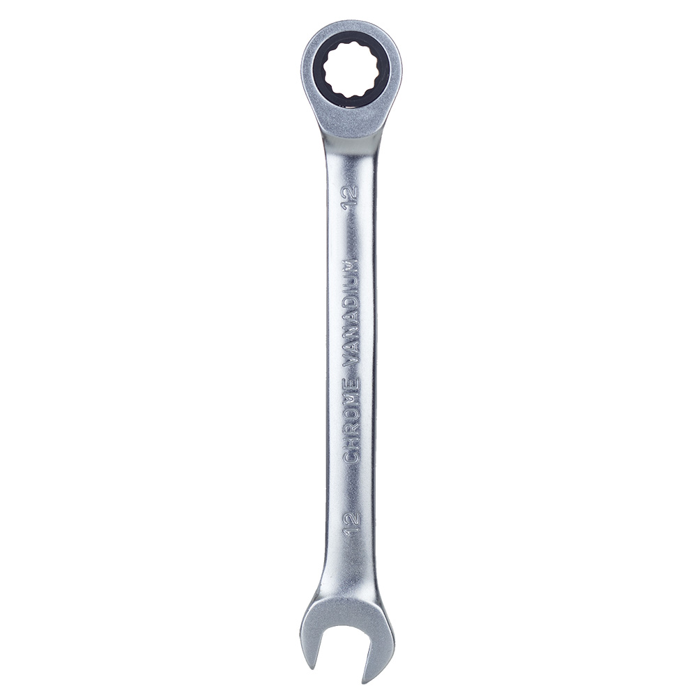 Ключ трещоточный рожково-накидний 12 мм CrV satine SIGMA (6022121) - зручний інструмент для роботи з гайками та болтами, виготовлений з високоякісної хром-ванадієвої сталі, забезпечує надійність та довговічність.
