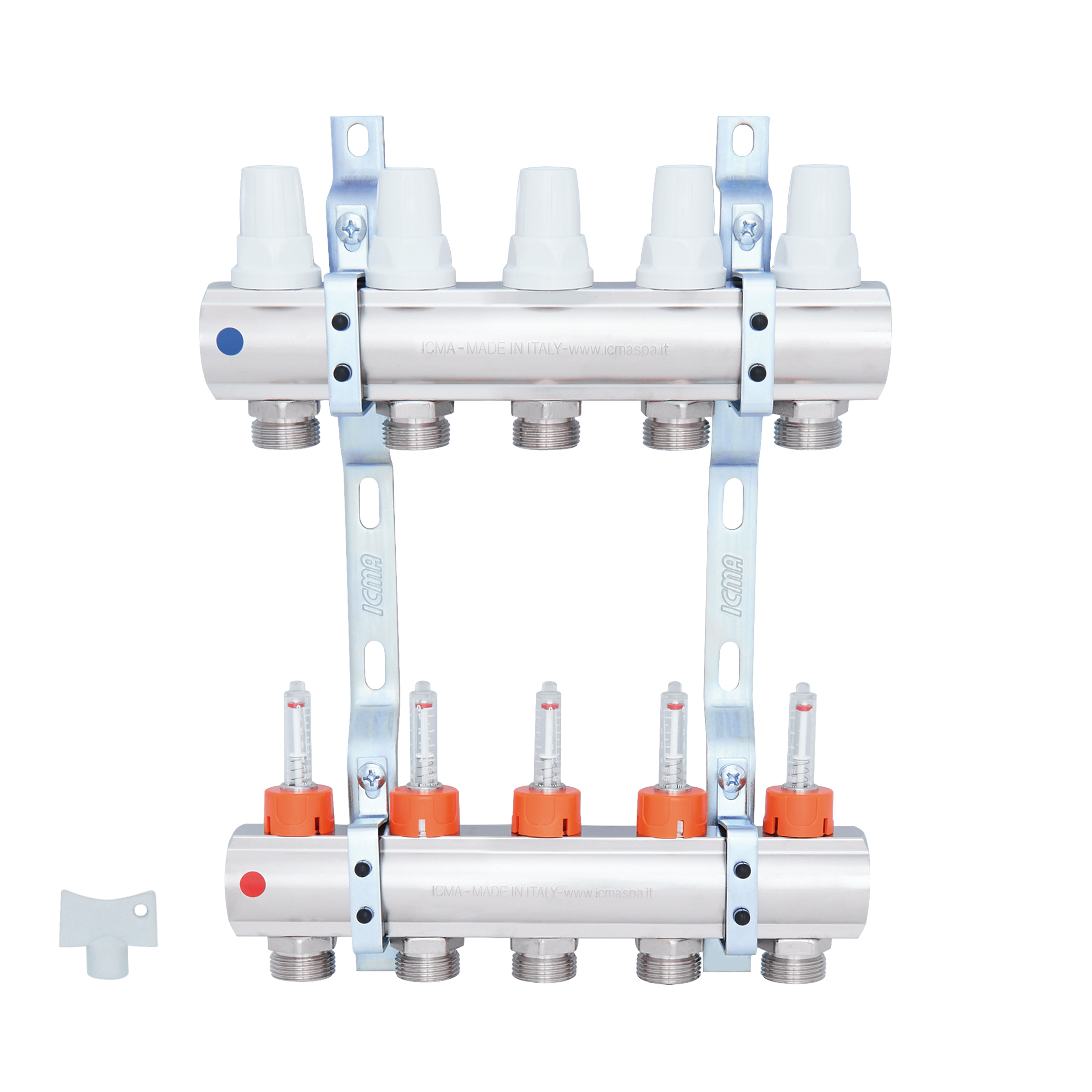 Колектор Icma - надійний вибір для вашої системи. Витратоміри допоможуть контролювати споживання, а якість матеріалів гарантує тривалий термін служби. Не пропустіть можливість покращити свою систему опалення!