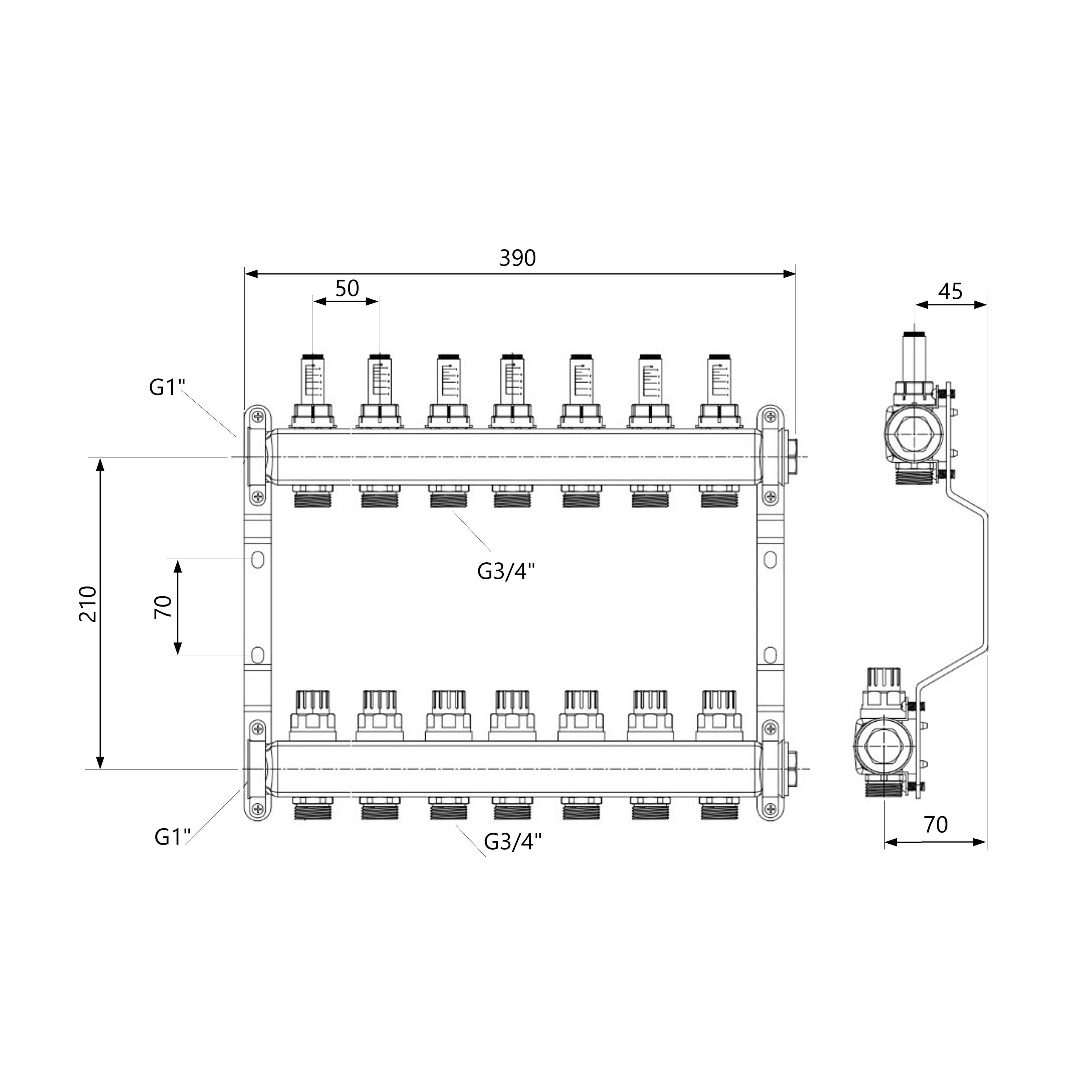 Характеристики Колектор з витратомірами SD Plus, 7 виходів, модель SD0047 код товару SD00041506
