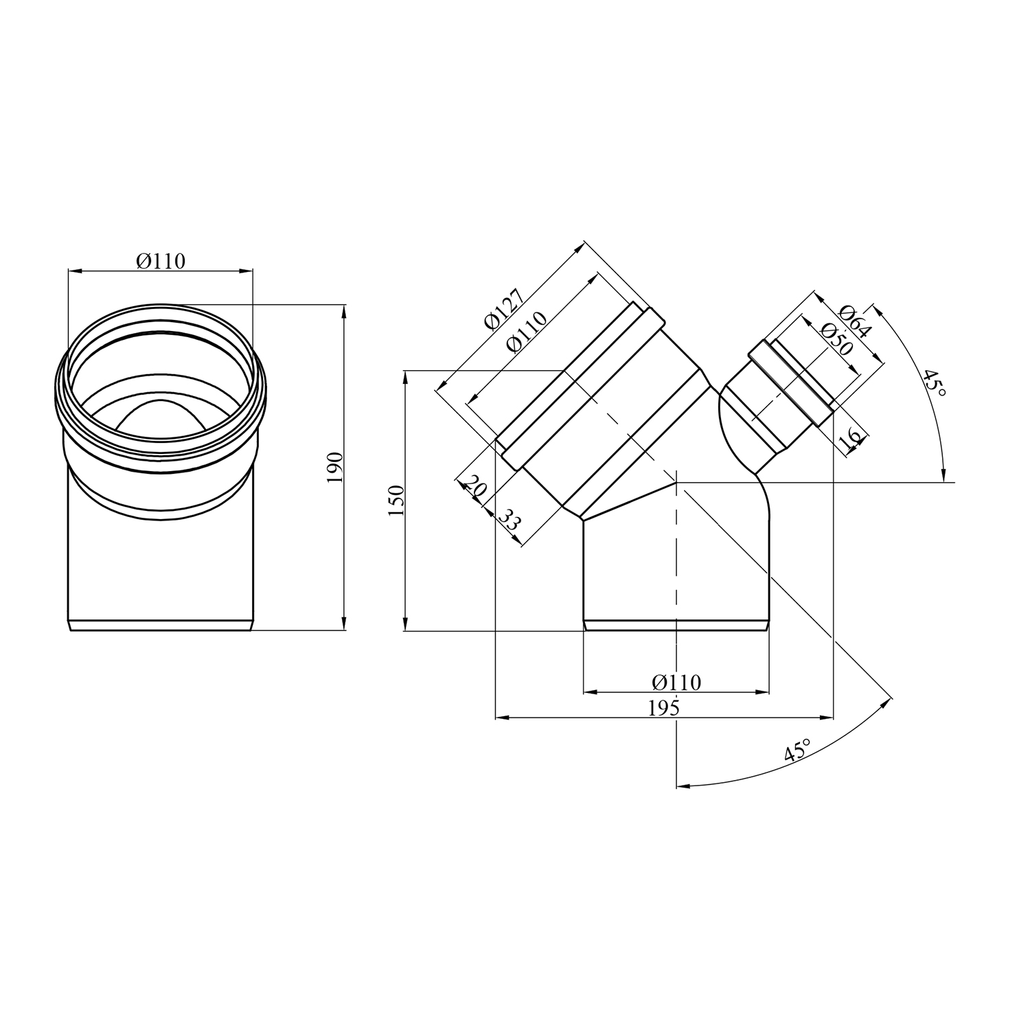 Опис Коліно для внутрішньої каналізації Rozma 110х45° з відводом 50 мм вгору код товару CV029906