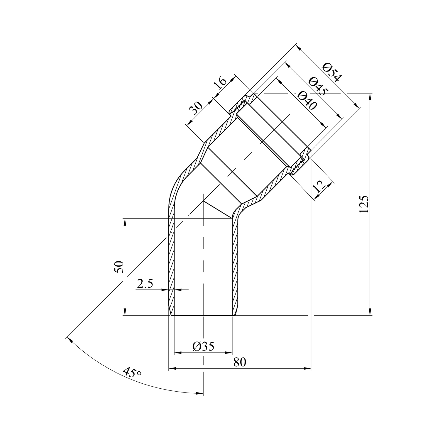 Опис Колено для внутренней канализации Rozma 40х45° код товару CV034266