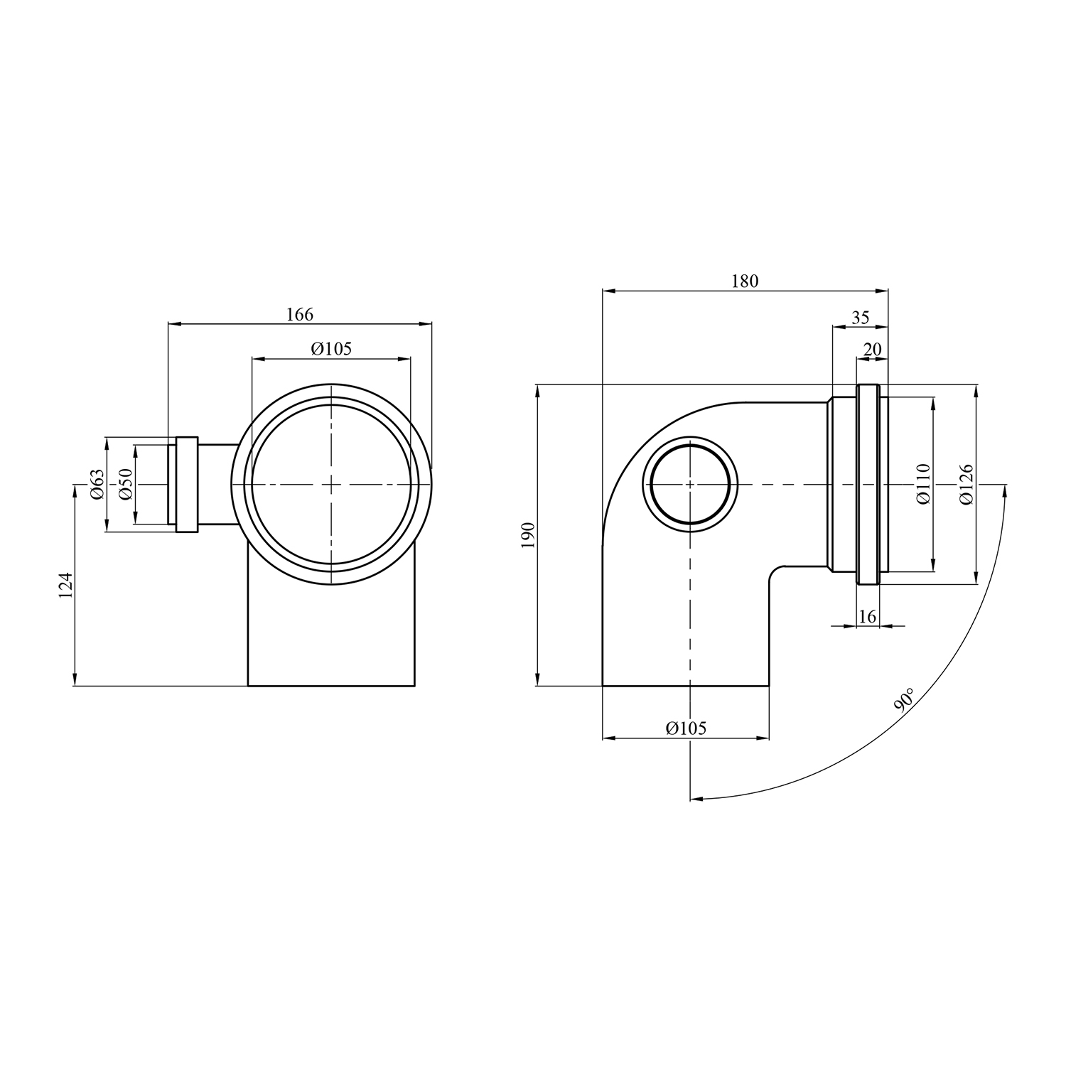 Опис Колено двоплоскостне для внутрішньої каналізації Rozma 110х90° з відводом 50 мм вліво код товару CV014412