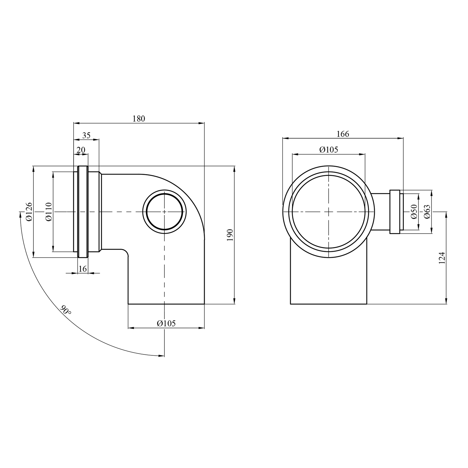 Опис Колено двоплоскостне для внутрішньої каналізації Rozma 110х90° з відводом 50 мм вправо код товару CV020444