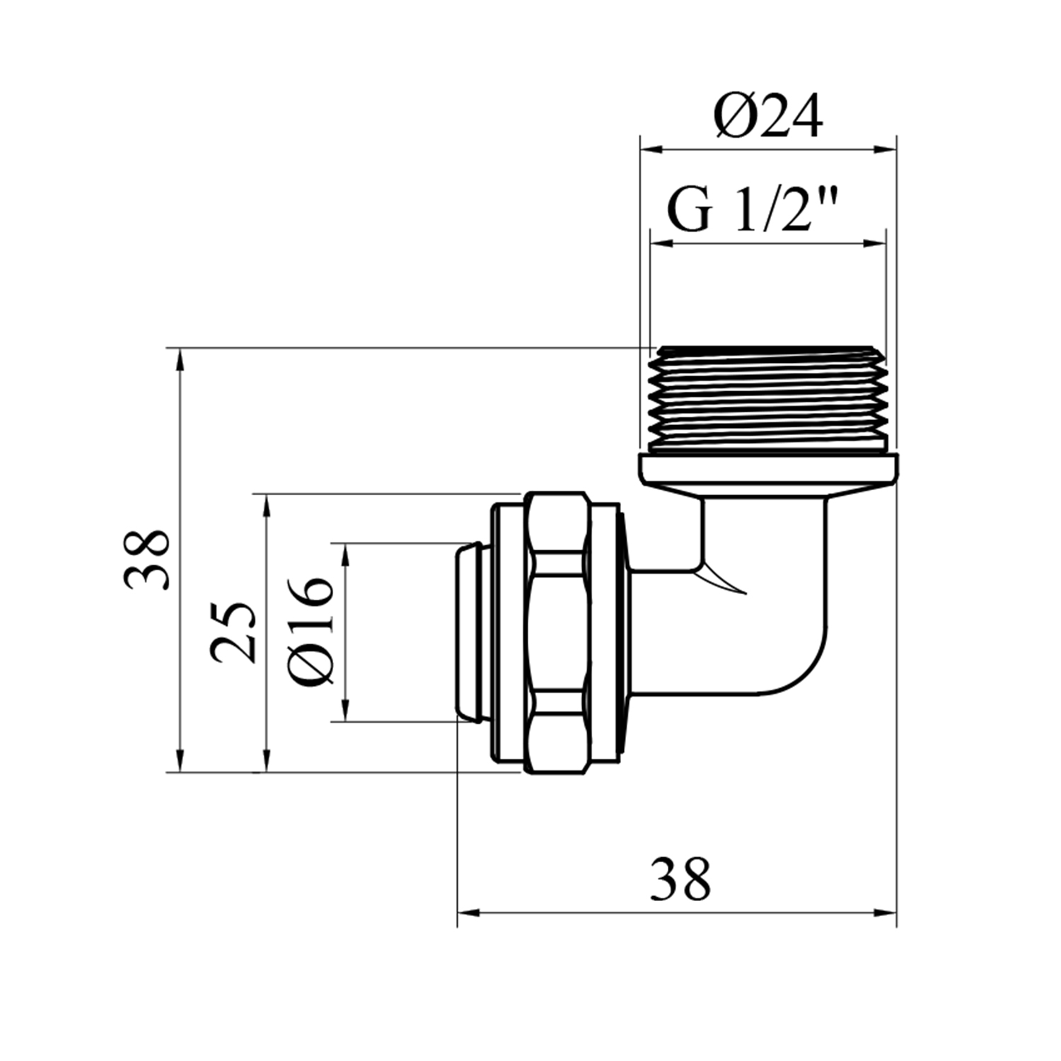 - Розмір: DN 16x1/2