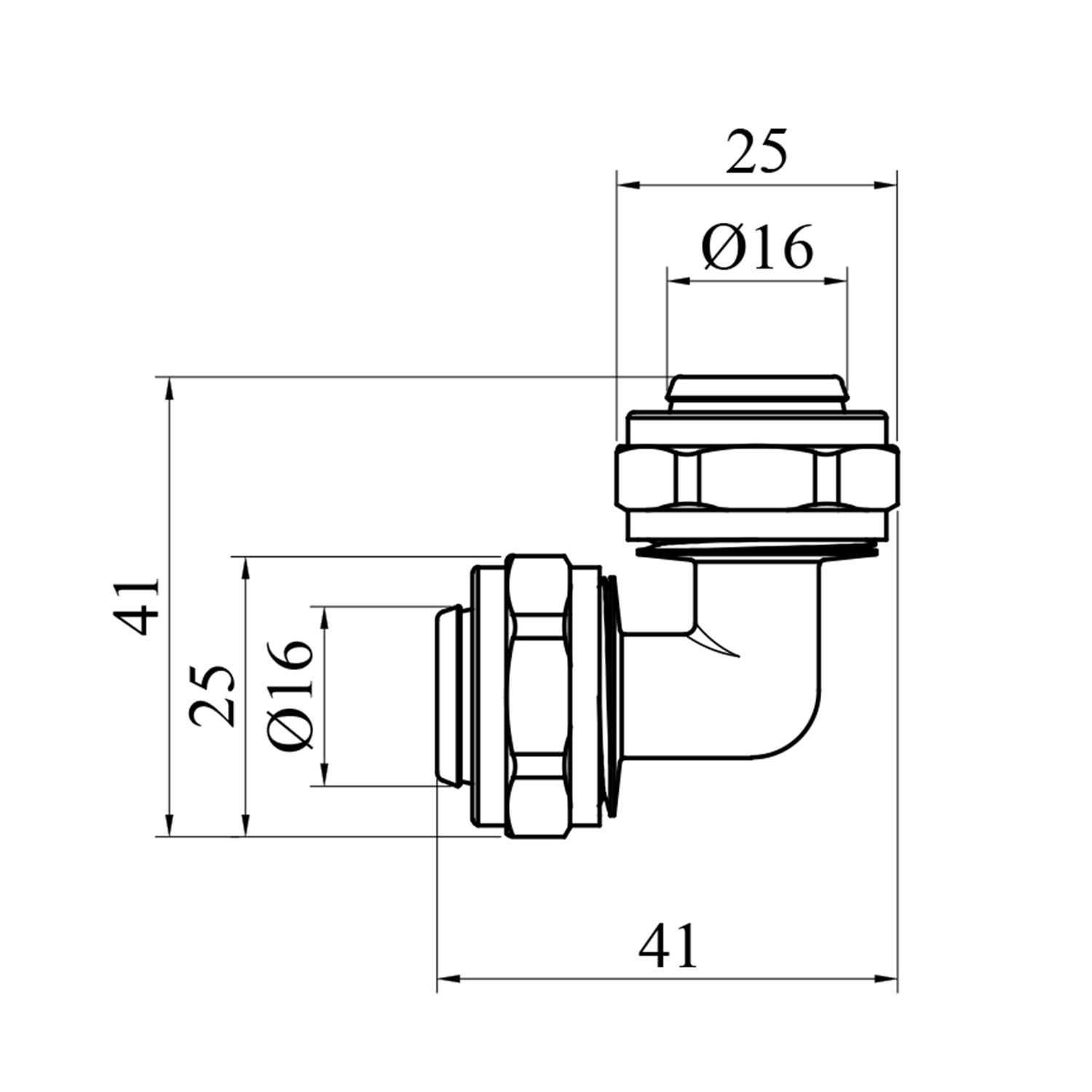 Коліно металопластикове STA (DN) 16x16, нікельоване