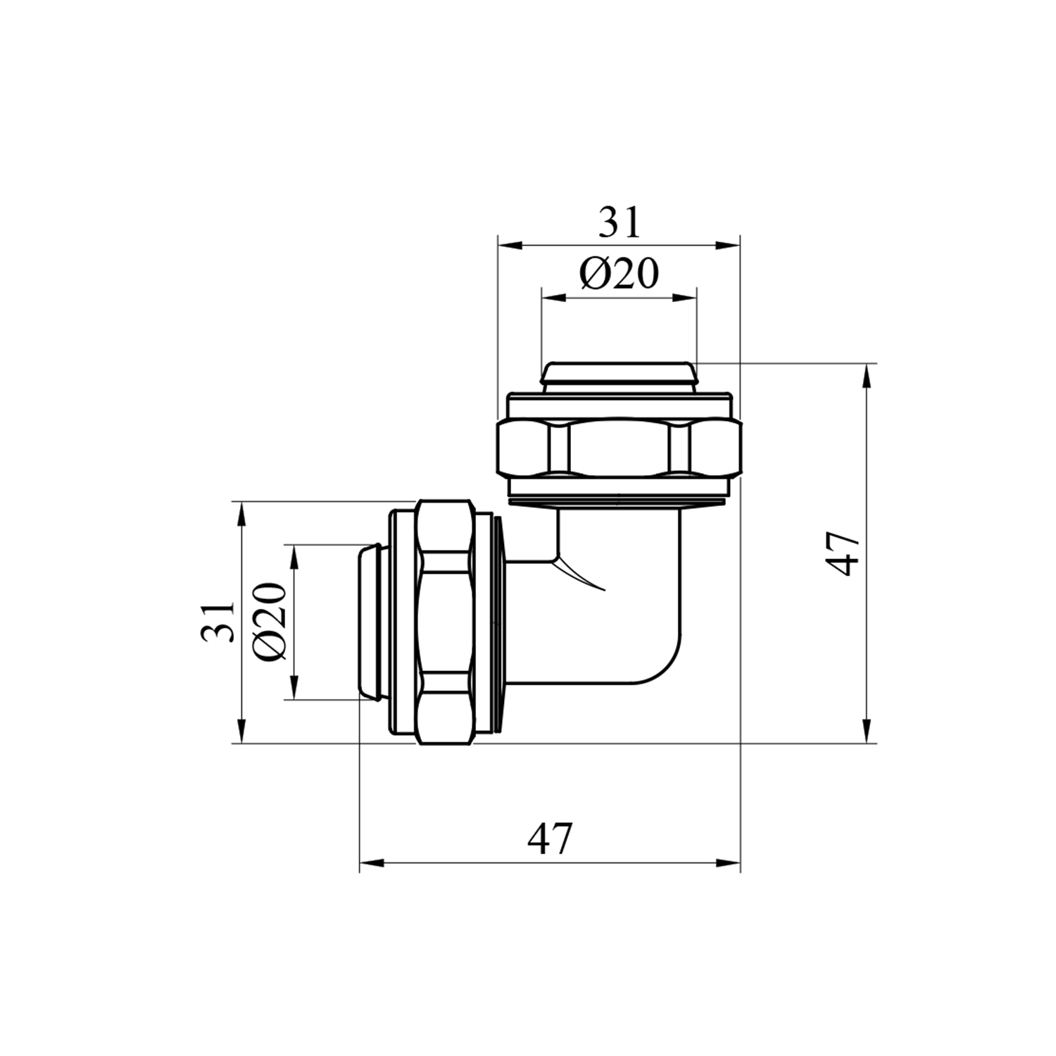 Характеристики Коліно металопластикове STA (DN) 20x20 нікельоване код товару CV009687