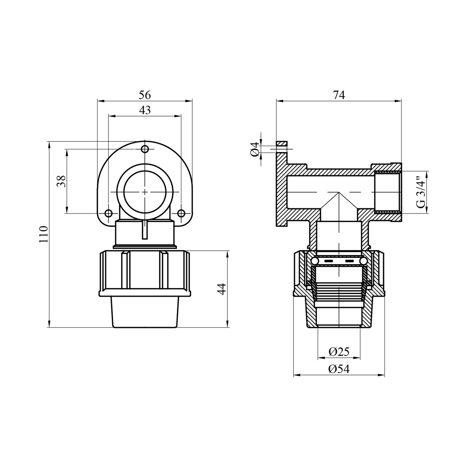 Характеристики Колено настенное ПЭ SantehPlast 25х3/4" РВ код товару CV019215