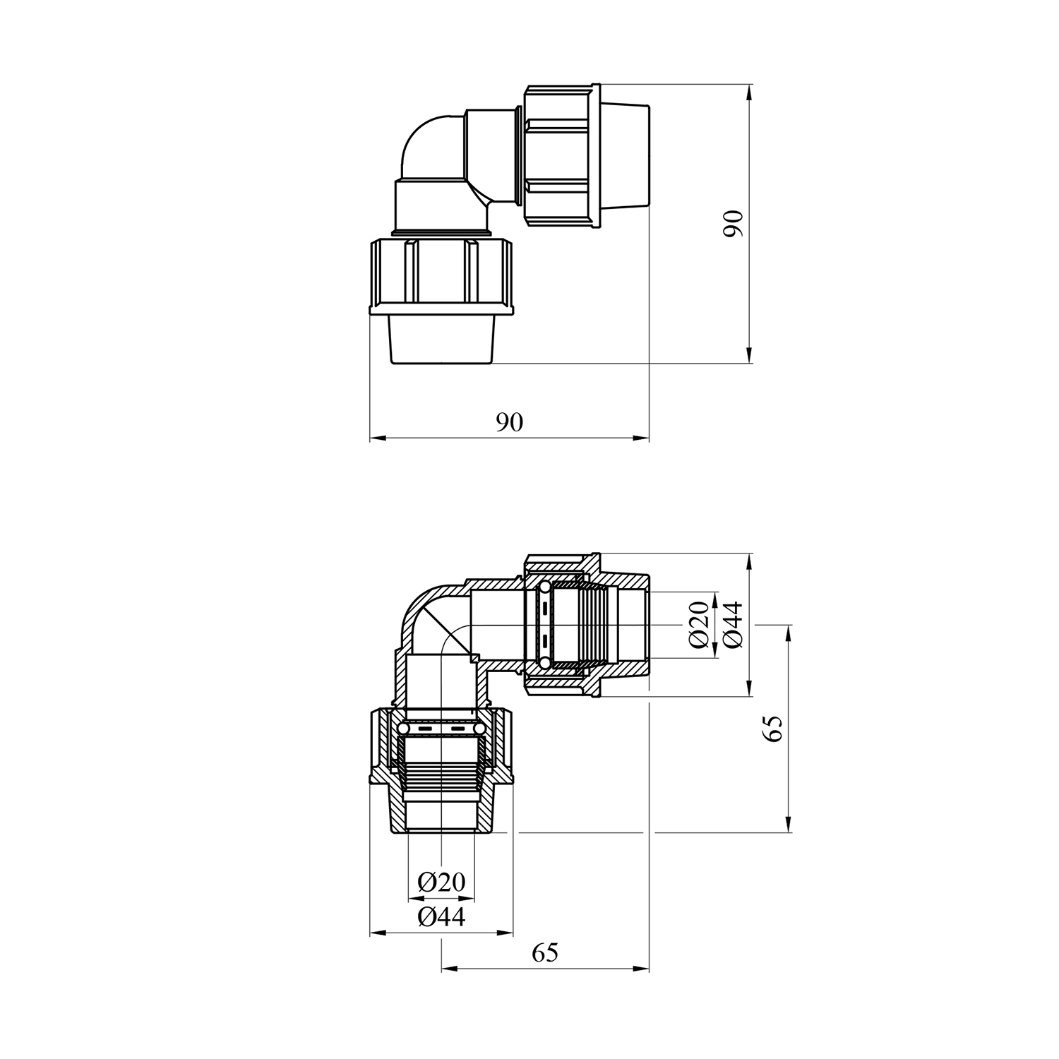 Опис Колено ПЭ SantehPlast 20х20 мм код товару CV014738