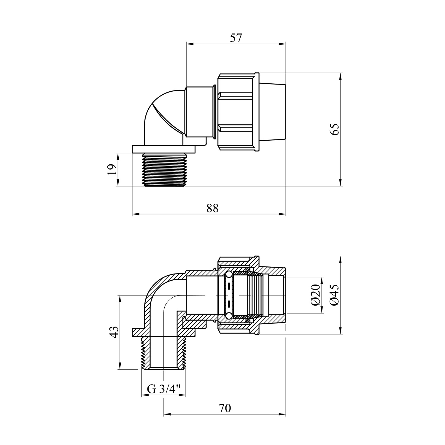 Опис Колено ПЭ SantehPlast 20х3/4" РН код товару CV017241