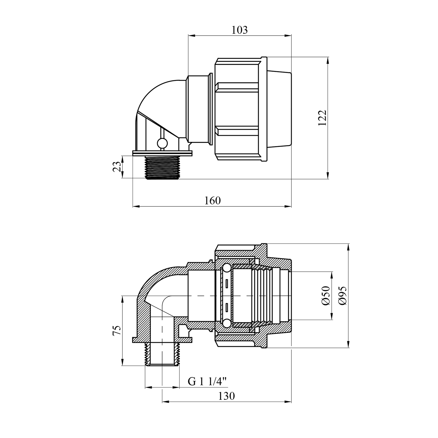 Характеристики Колено ПЭ SantehPlast 50х1 1/4" РН код товару CV020435