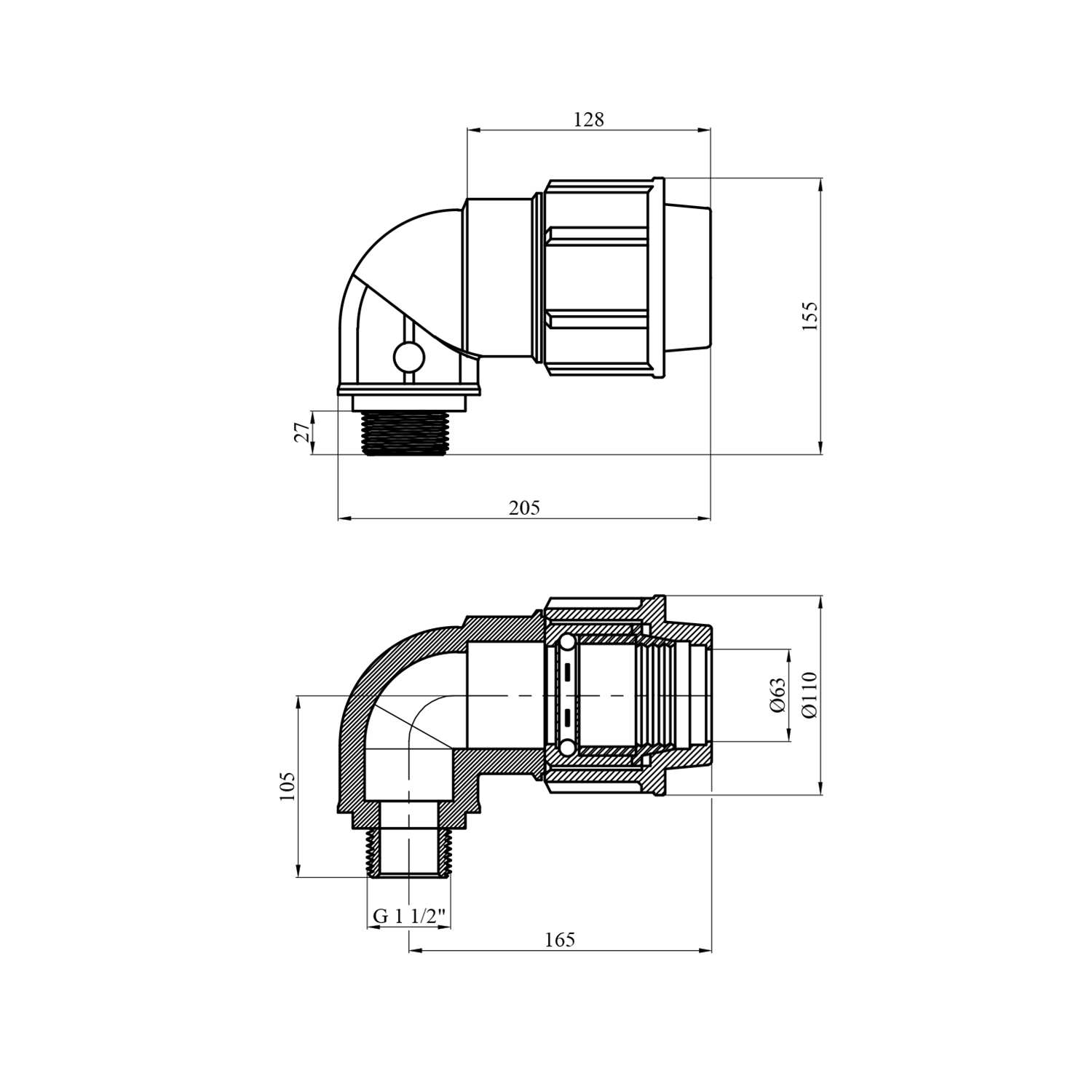 Характеристики Колено ПЭ SantehPlast 63х1 1/2" РН код товару CV020654