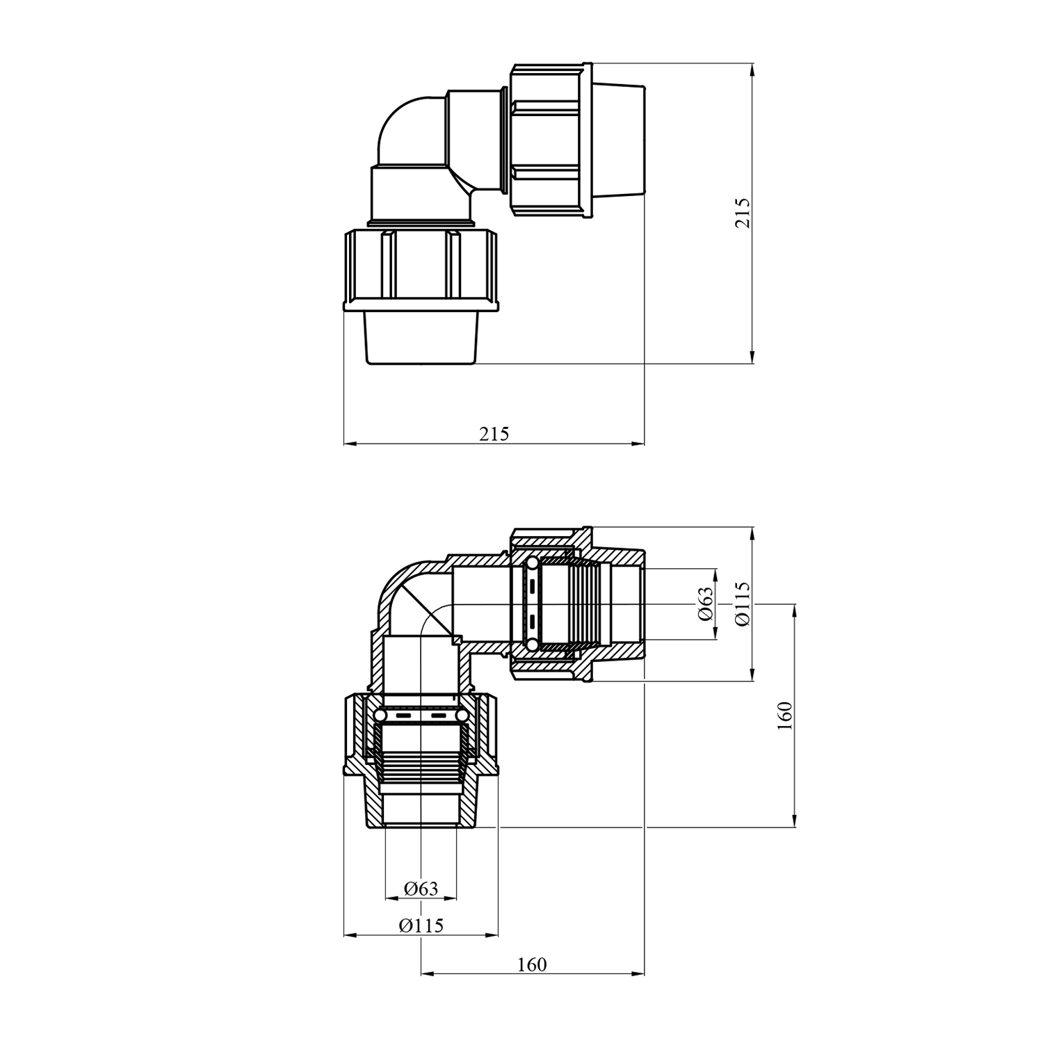 Характеристики Колено ПЭ SantehPlast 63х63 мм код товару CV022314