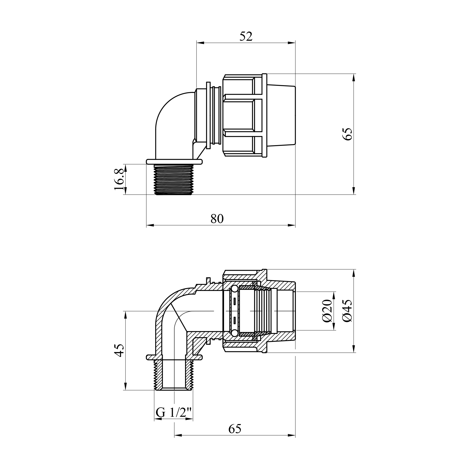 Опис Колено ПЕ STR 20х1/2 РН код товару CV028602