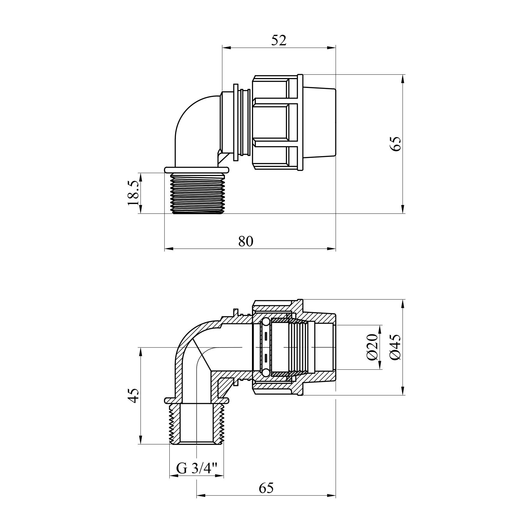 Характеристики Колено ПЕ STR 20х3/4 РН код товару CV028603