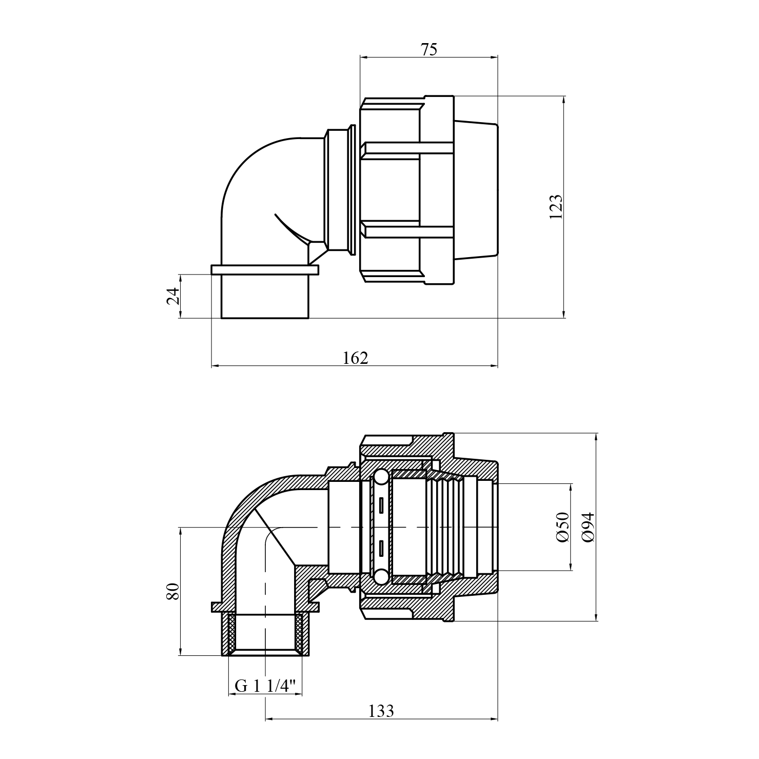 Коліно ПЕ STR 50×1 1/4 РВ