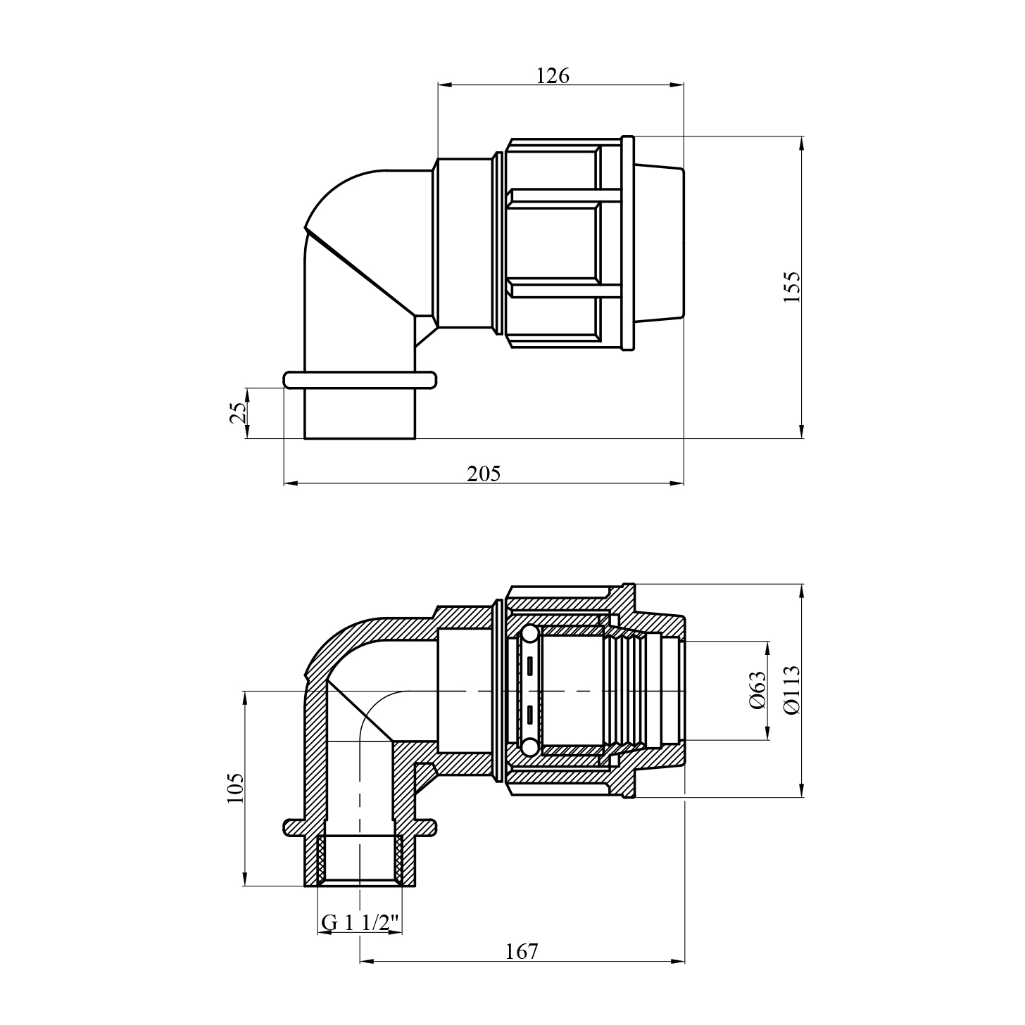 Опис Колено ПЕ STR 63х1 1/2 РВ код товару CV028623