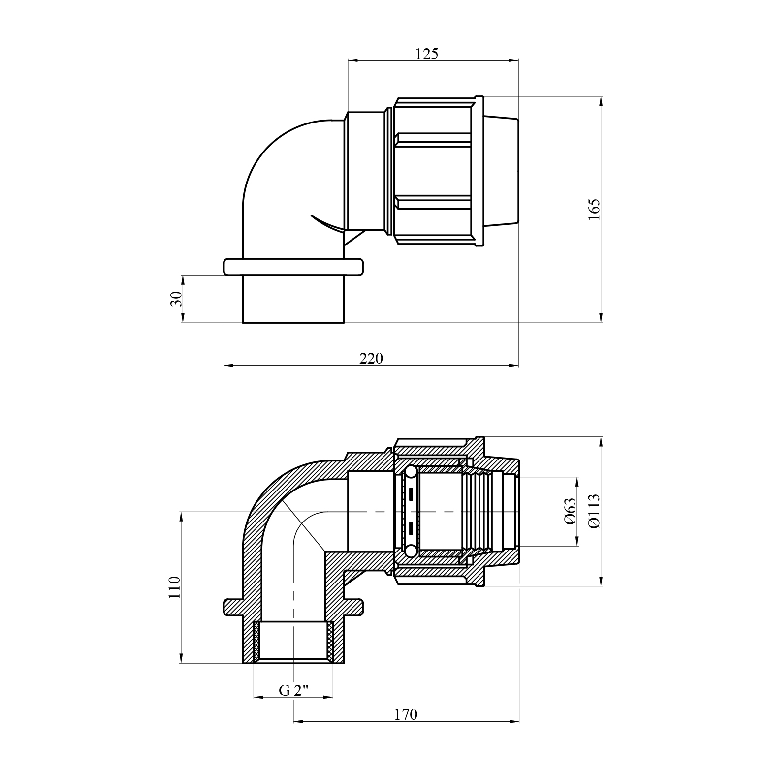 Характеристики Колено ПЕ STR 63х2 РВ код товару CV028624