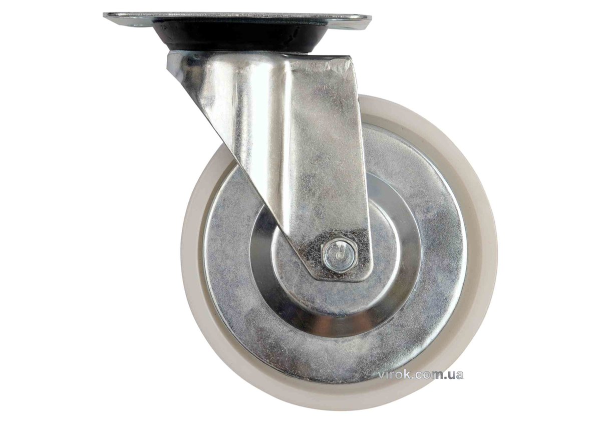Характеристики Колесо для тележки поліамідне 160 мм, b = 40 мм VOREL з обертовою опорою; h = 195 мм, навантаження 130 кг (VO-87435) код товару 87435