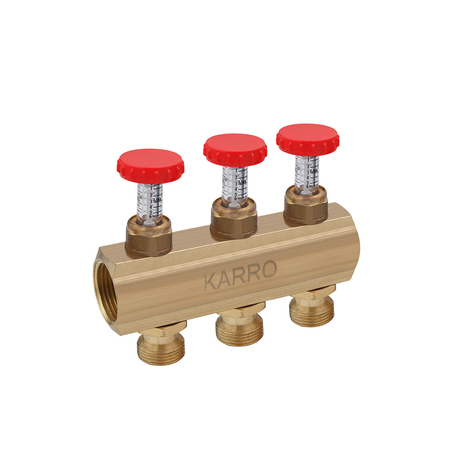 Опис Колектор регулюючий Karro на 3 виходи 1х3/4 з витратоміром, латунний KR-1011U код товару CV022078