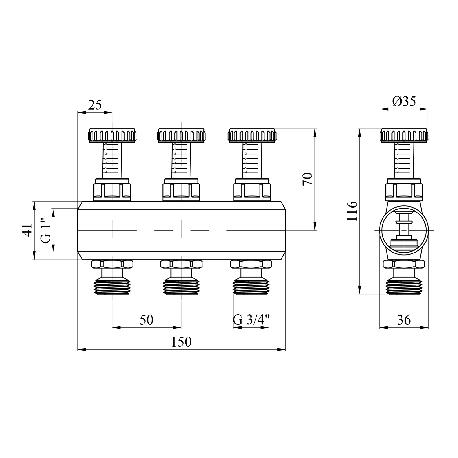 Характеристики Колектор регулюючий Karro на 3 виходи 1х3/4 з витратоміром, латунний KR-1011U код товару CV022078