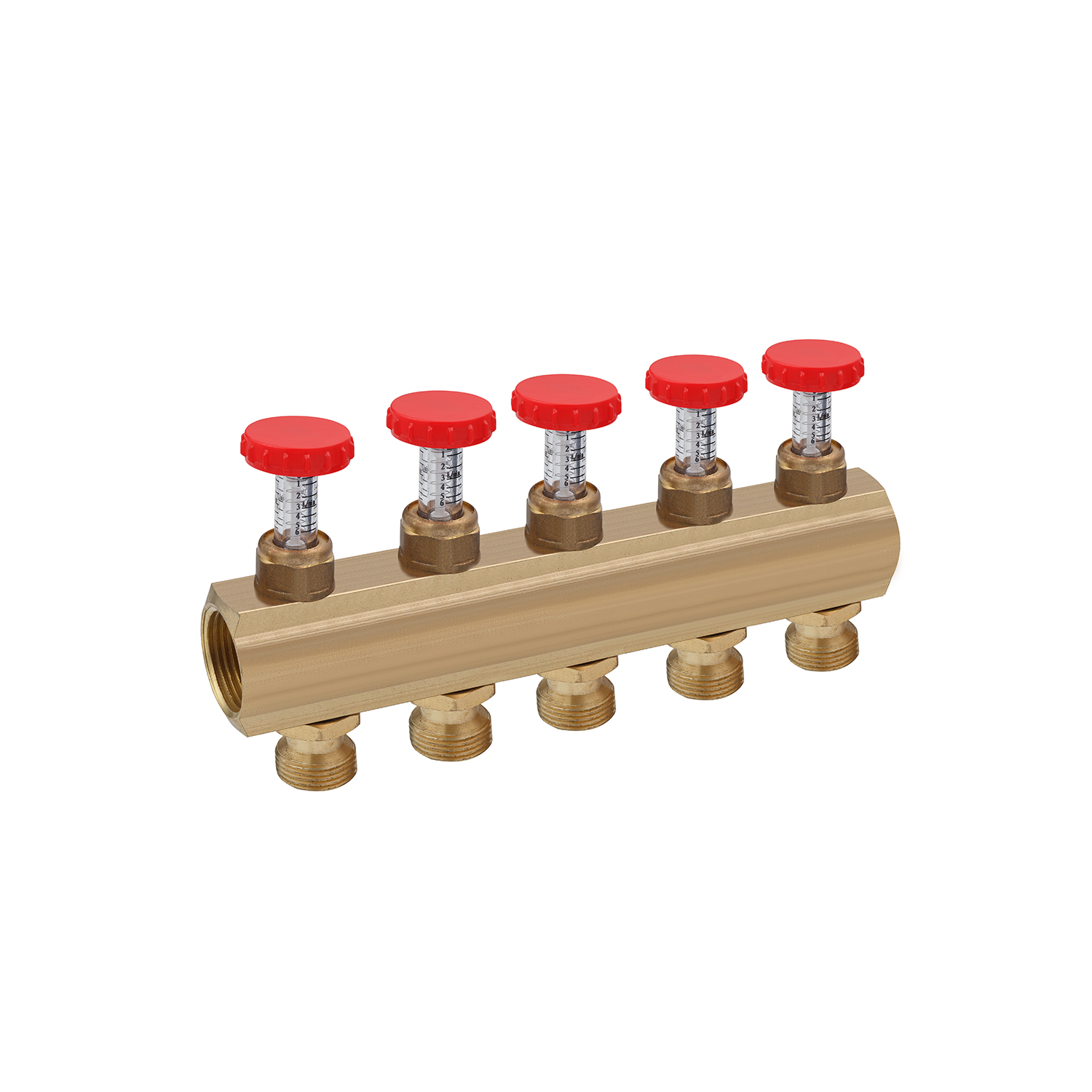 Колектор регулюючий Karro на 5 виходів 1х3/4 з витратоміром, латунний KR-1011U