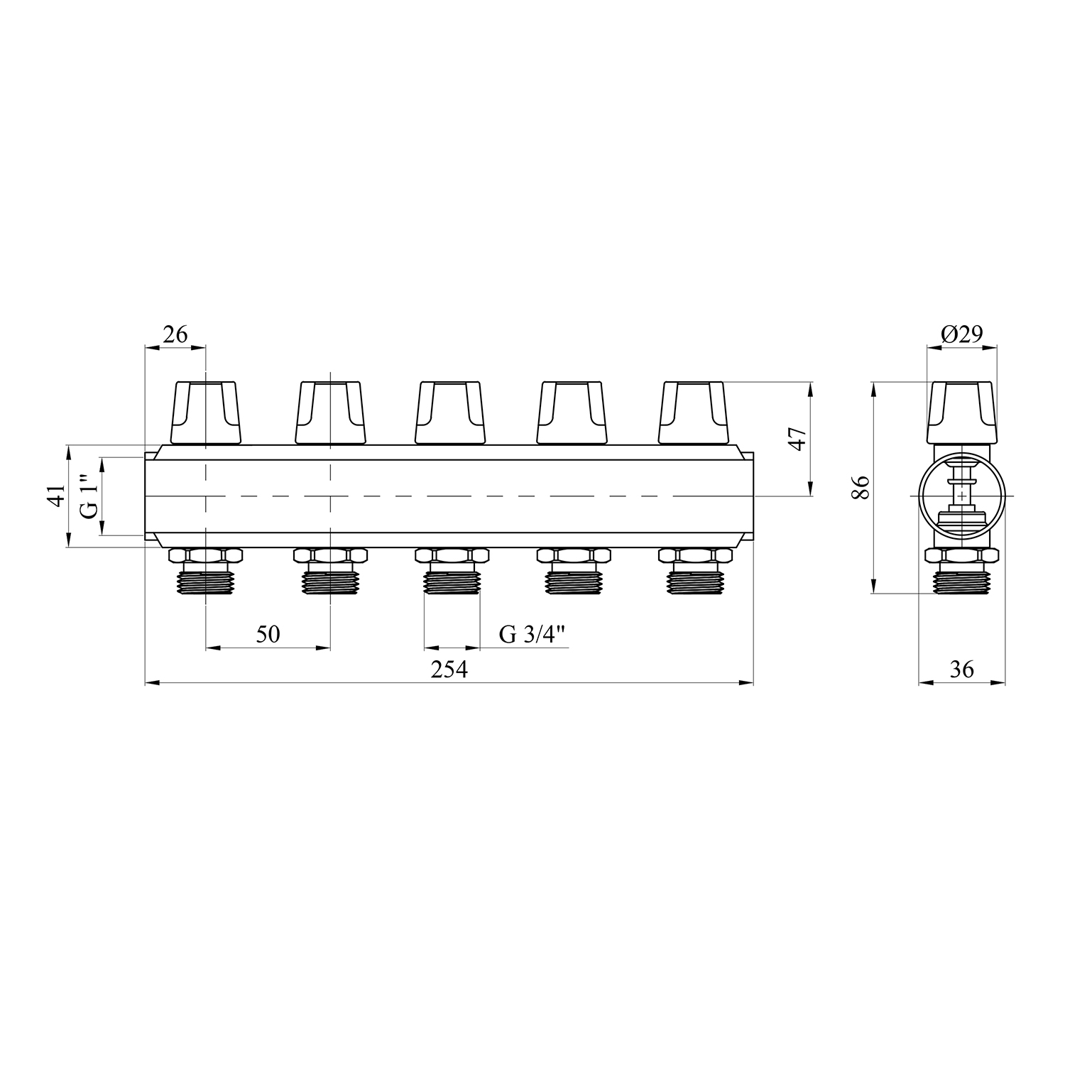 Опис Колектор регулюючий Karro на 5 виходів 1х3/4 вентиль, латунний KR-1007B код товару CV012513