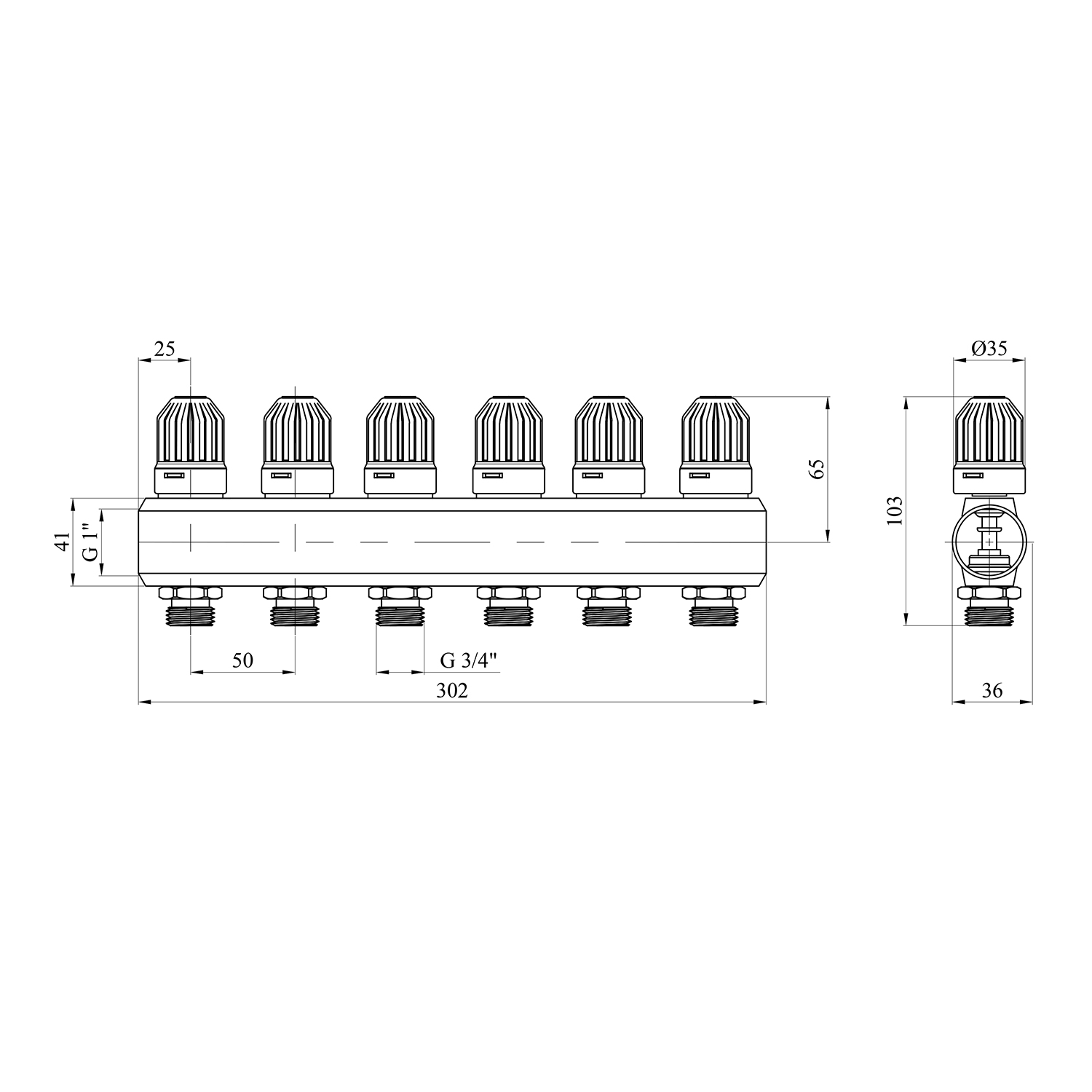 Опис Колектор регулюючий Karro на 6 виходів 1х3/4 термостатичний вентиль, латунний KR-1012B код товару CV017922