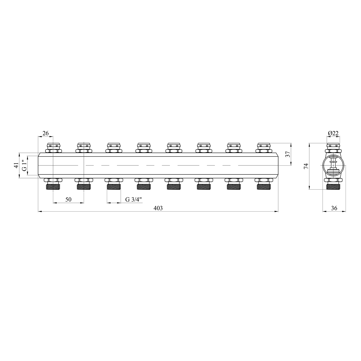 Характеристики Колектор регулюючий Karro на 8 виходів 1х3/4 відсікальний вентиль, латунний KR-1012U код товару CV019089