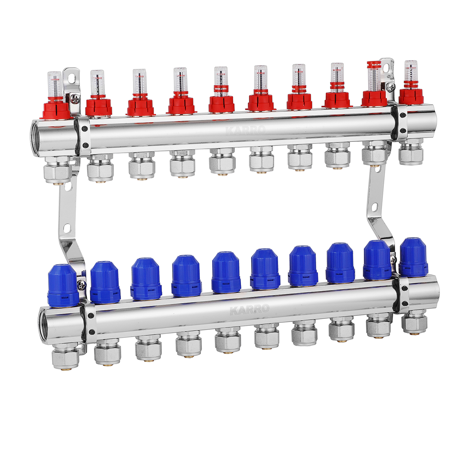 Колектор Karro KR-20160 - це надійний вибір для вашої системи. Хромоване покриття забезпечує стійкість до корозії. 10 виходів з євроконусами дозволяють легко підключати різні елементи. Простота монтажу - це те, що вам потрібно. Висока якість матеріалів гарантує довговічність. Не пропустіть можливість поліпшити свою систему опалення!