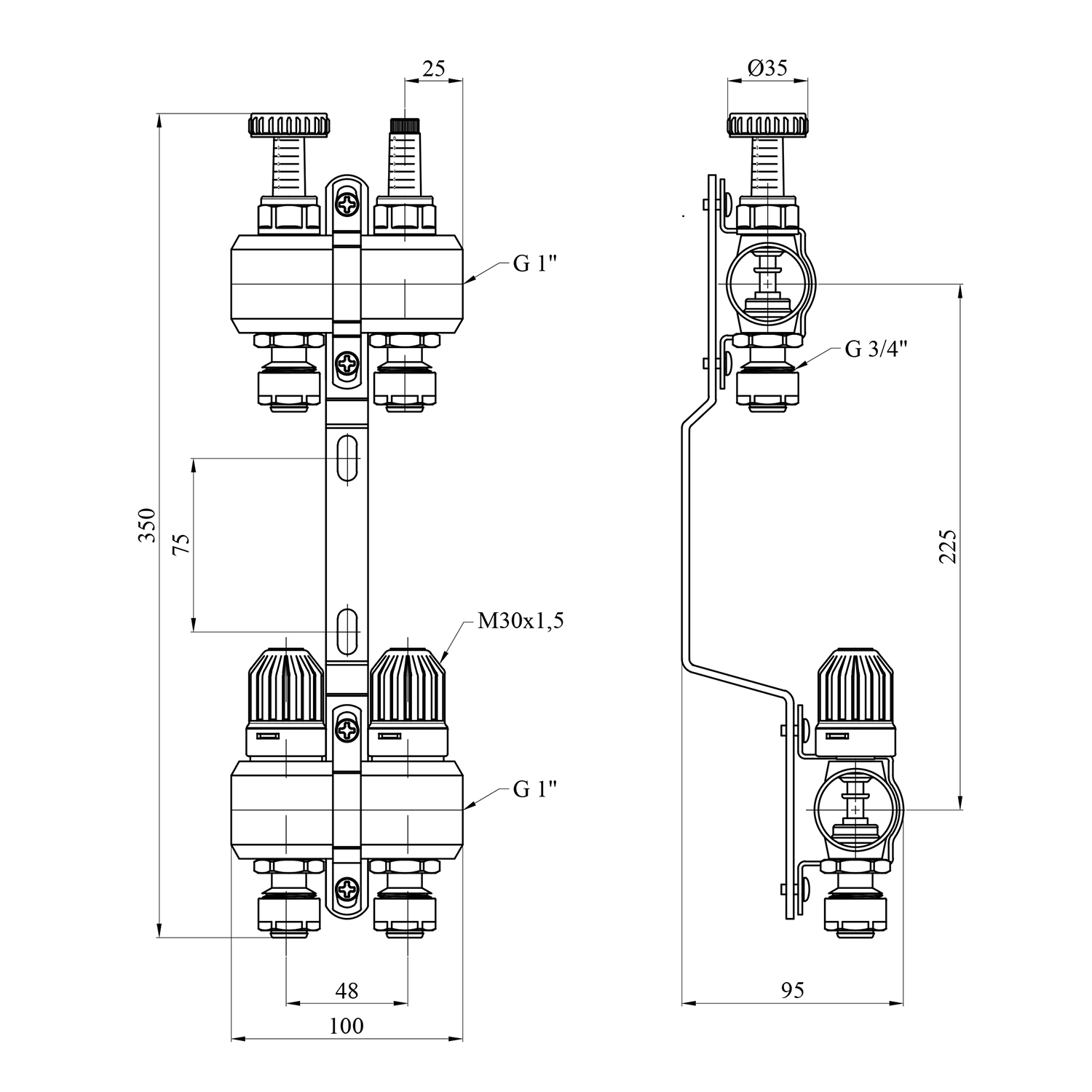 Коллектор с термовентилями, коллектор с расходомерами, крепеж, евроконусы