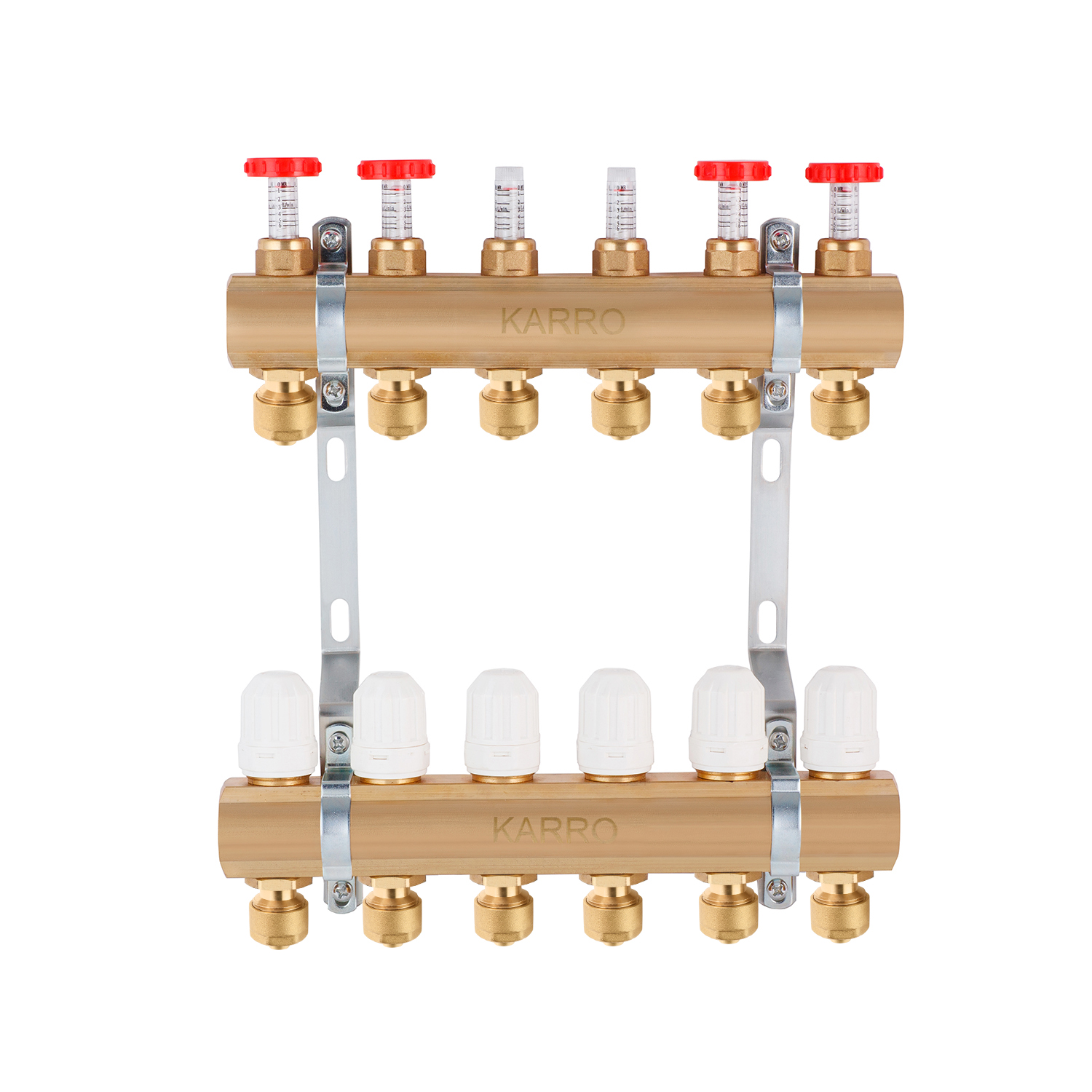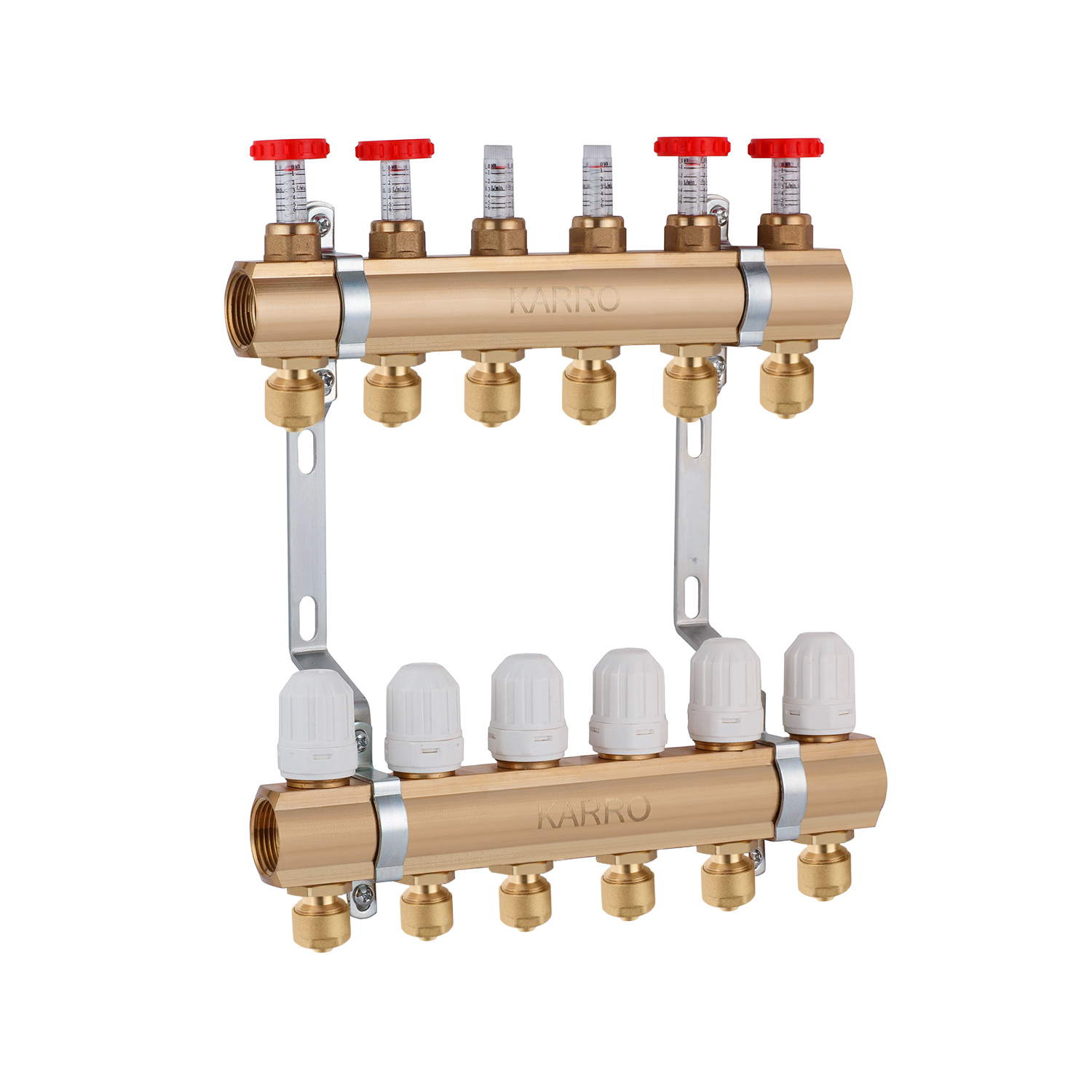 Опис Колектор в зборі Karro на 6 виходів з євроконусами, латунний KR-1010 код товару CV011682