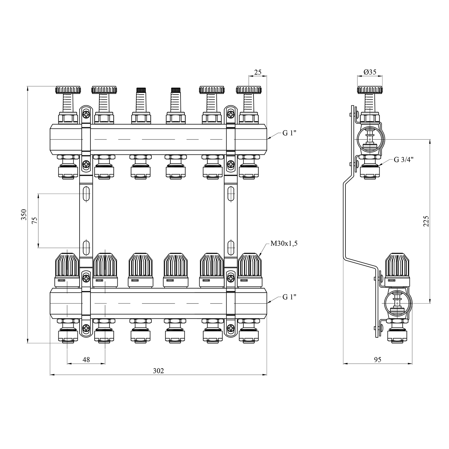 Коллектор с термовентилями, коллектор с расходомерами, крепеж, евроконусы