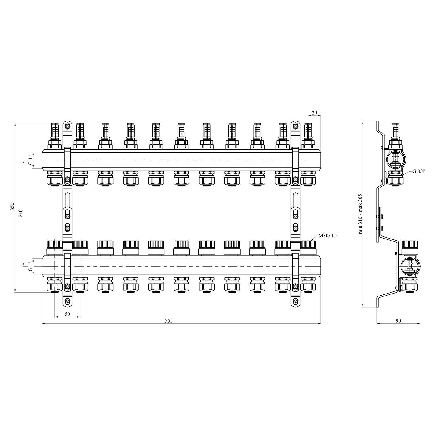 Опис Колектор в зборі STA на 11 виходів 1х3/4 з євроконусами, латунний код товару CV028333