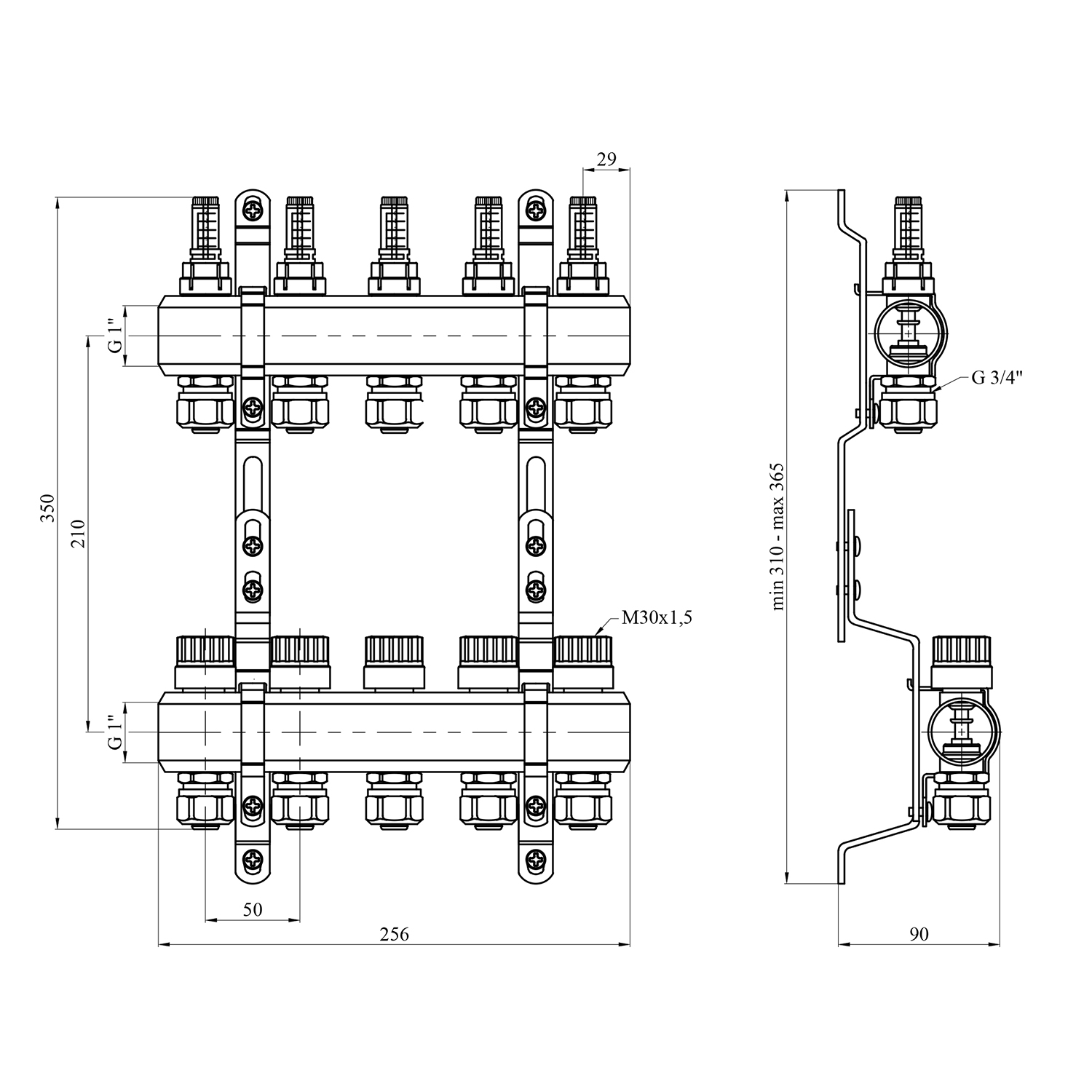 Коллектор с термовентилями, коллектор с расходомерами, крепеж, евроконусы