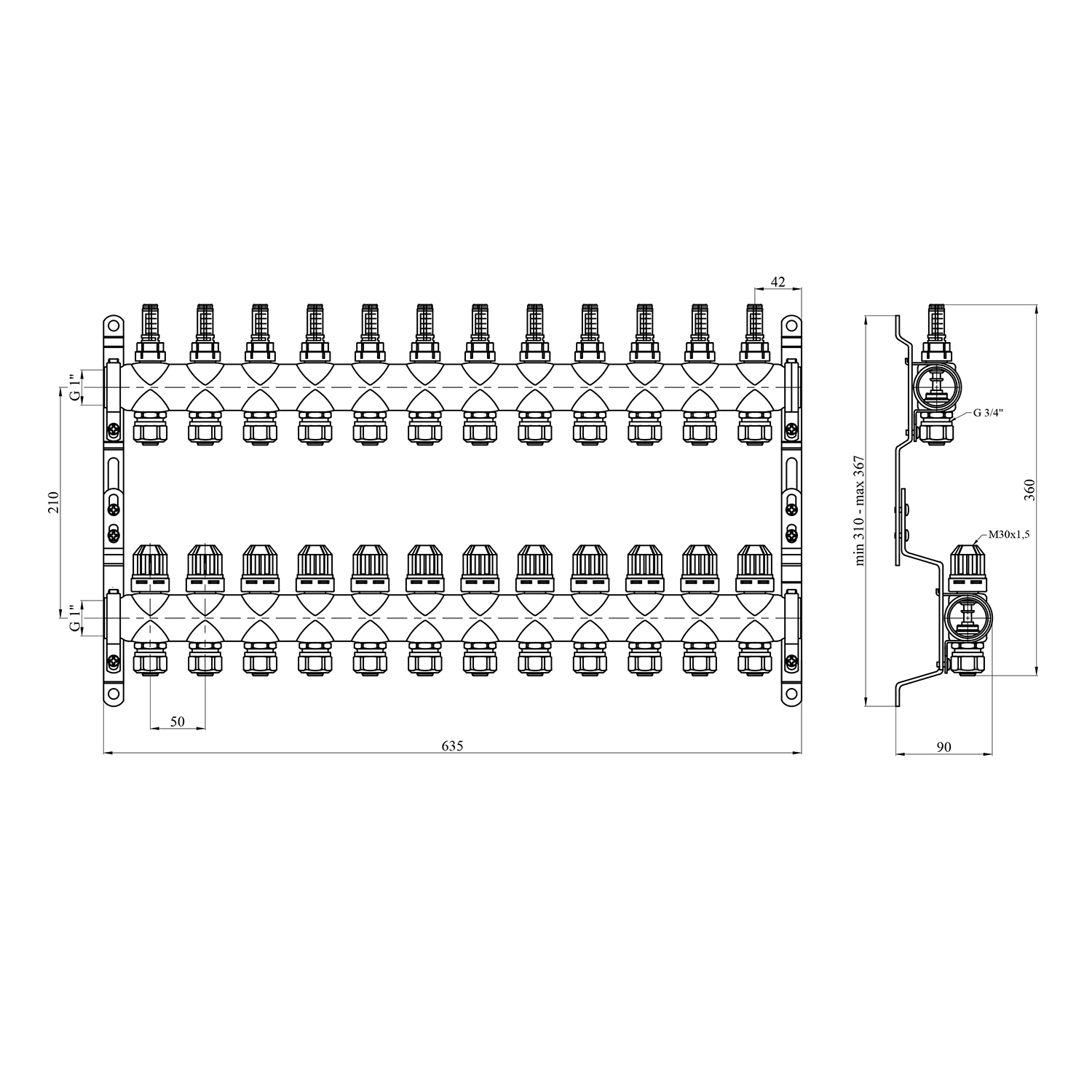 Колектор STA Classic на 12 виходів G1 з євроконусами, нержавійка