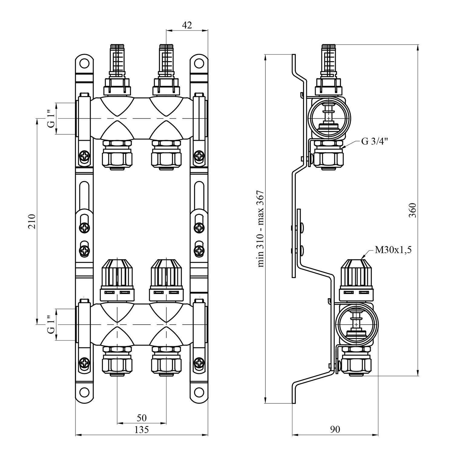 Характеристики Колектор в зборі STA Classic на 2 виходи G1 з євроконусами, нержавіюча сталь код товару CV027914