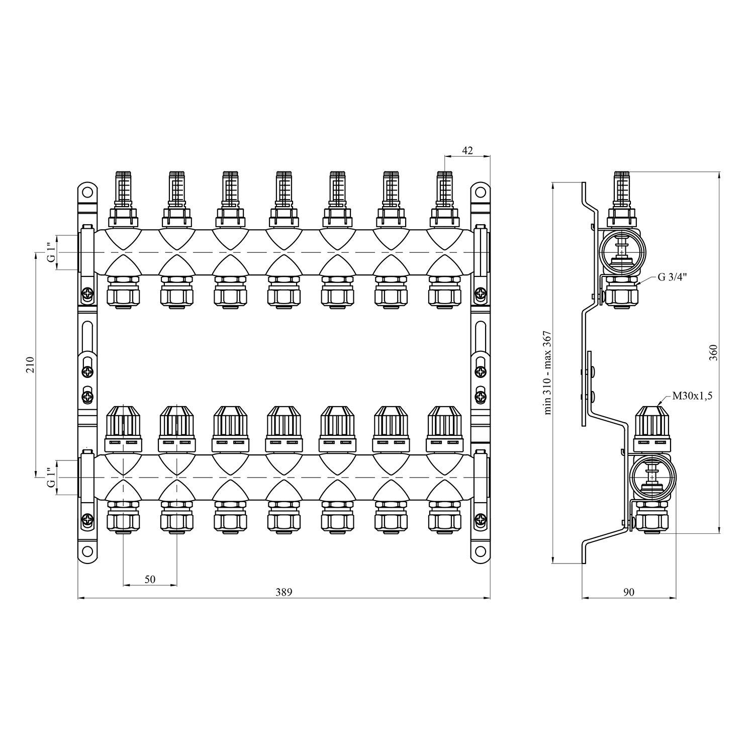 Коллектор с термовентилями, коллектор с расходомерами, крепеж, евроконусы
