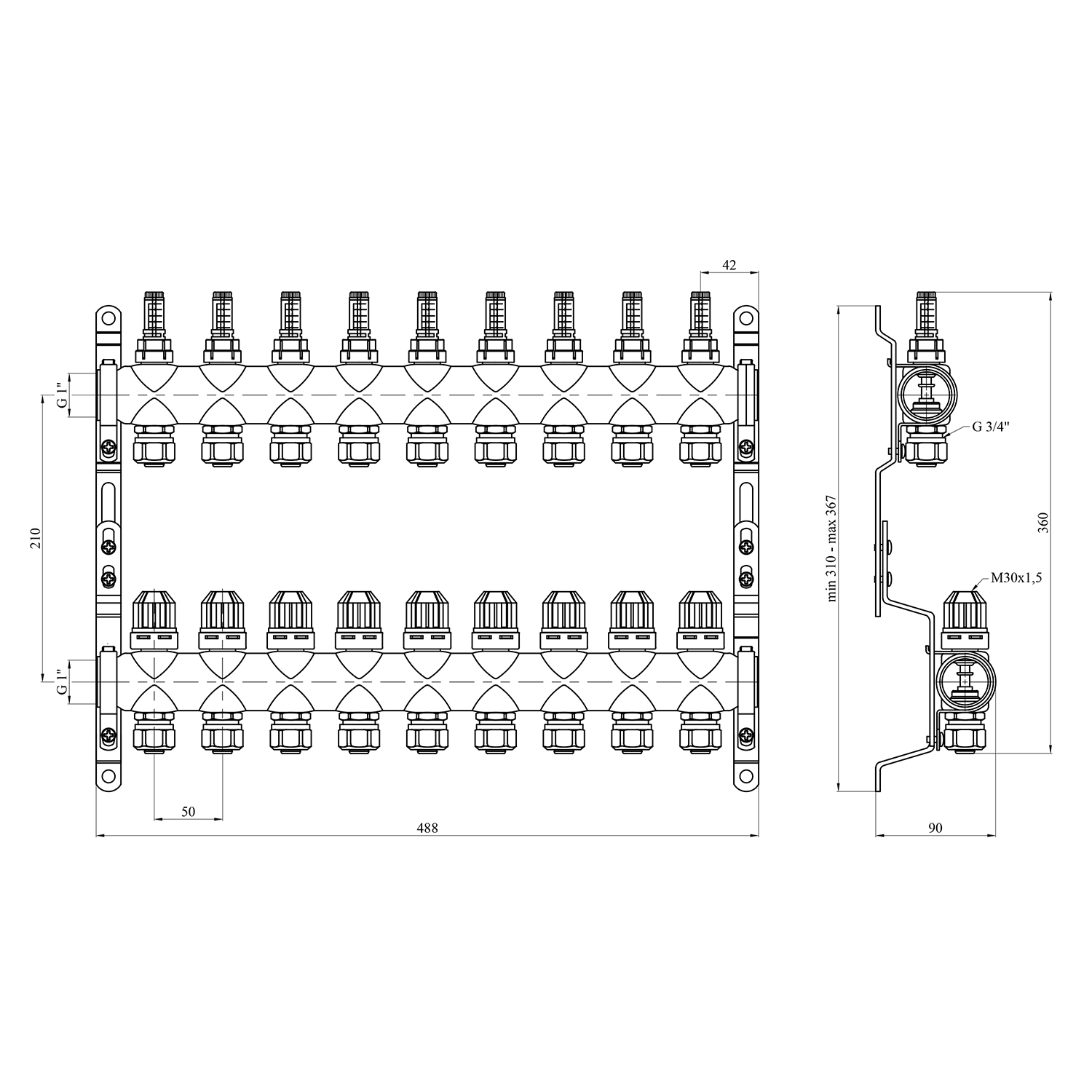 Характеристики Колектор в зборі STA Classic на 9 виходів G1 з євроконусами, нержавіюча сталь код товару CV028319