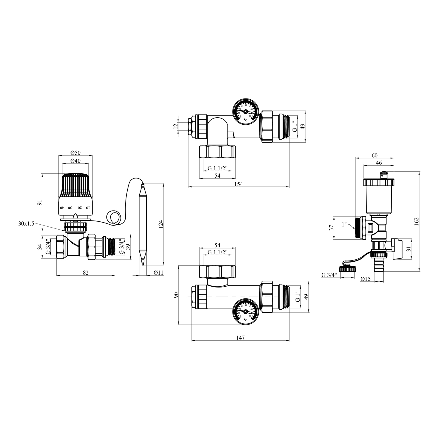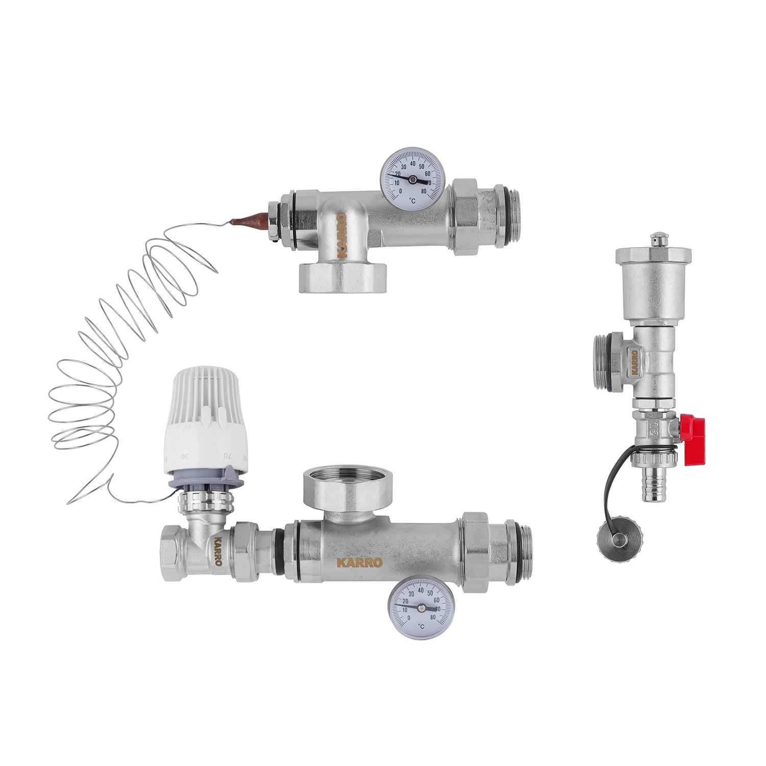 Опис Колекторна група Karro 3/4 в зборі з термостатичним прямим краном KR-88000 нікельована код товару CV014961