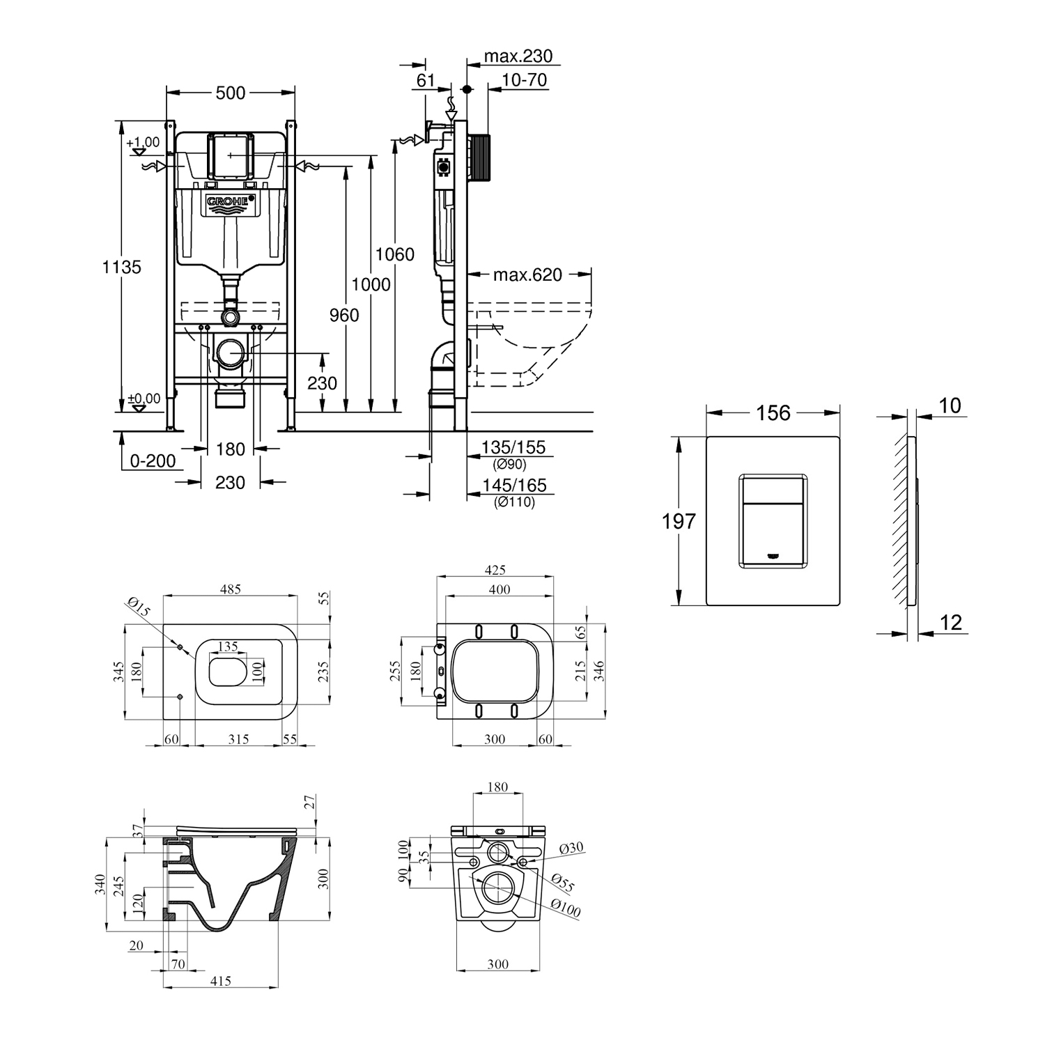 Характеристики Комплект 4 в 1: Установка Grohe Solido 2 в 1 38971000 + Панель смыва для унитаза Grohe Even 389662430 + Унитаз подвесной безобедочный Kroner Eifel WHI483429 TORNADO с сиденьем Slim Duroplast / Soft KE483429WHIT(38971966243KE48T) код товару CV036759