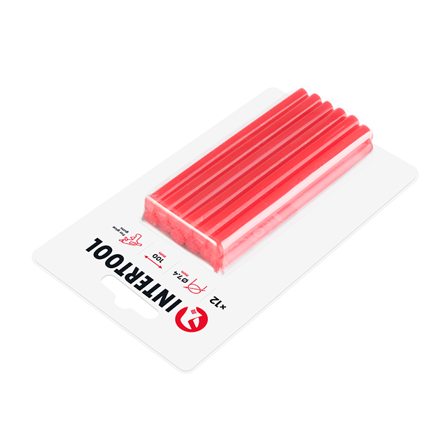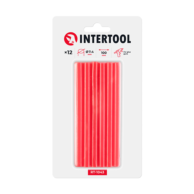 Опис Комплект червоних клеєвих стержнів 7.4мм*100мм, 12шт. INTERTOOL RT-1043 код товару RT-1043