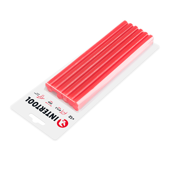 Опис Комплект червоних клеєвих стержнів 11.2мм*200мм, 12шт. INTERTOOL RT-1042 код товару RT-1042