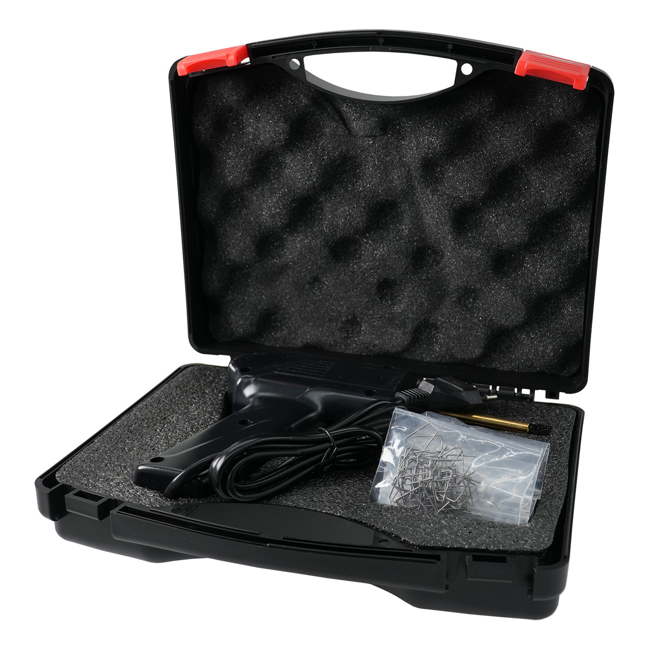 G.I.KRAFT CBRM70AC — это универсальный комплект для быстрого и надежного ремонта пластиковых деталей кузова, бамперов, креплений, панелей и т.д. Оснащенный удобным паяльником мощностью 70 Вт, набор позволяет эффективно соединять или укреплять поврежденные пластиковые элементы с помощью специальных металлических скоб.